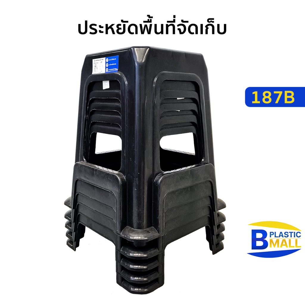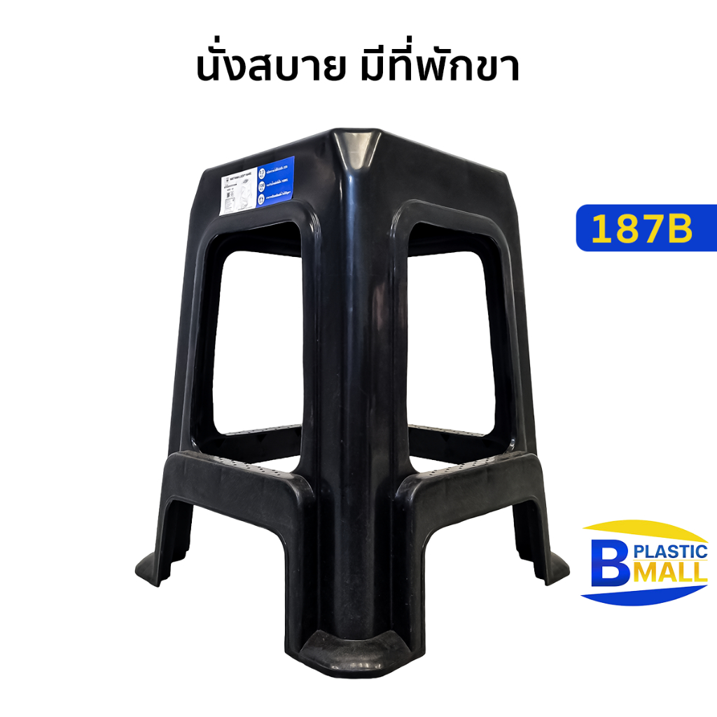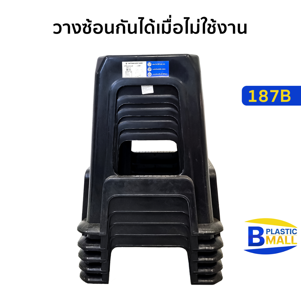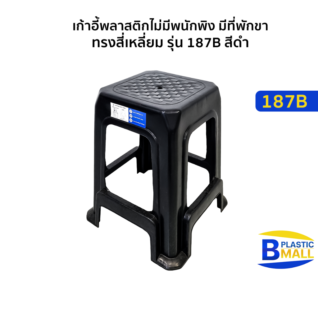 Luckyware เก้าอี้พลาสติกไม่มีพนักพิง มีที่พักขา ทรงสี่เหลี่ยม รุ่น 187B