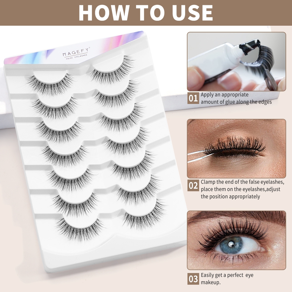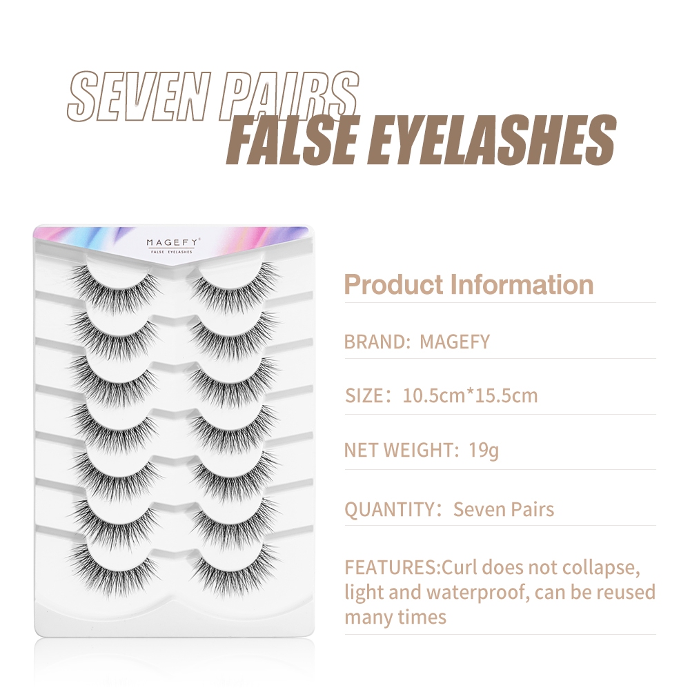 MAGEFY ขนตาปลอมธรรมชาติ 7คู่ ต่อขนตา อุปกรณ์ต่อขนตา ขนตาคุณภาพสูง ธรรมชาติบางและใช้งานง่าย 7308