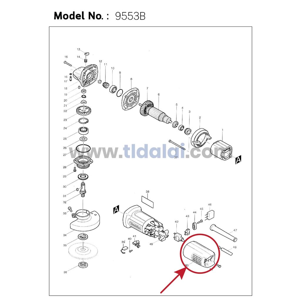 ฝาครอบท้าย (แท้) หินเจียร Makita มากีต้า รุ่น 9553B #50 (419092-2) (อะไหล่แท้ 100%) REAR COVER