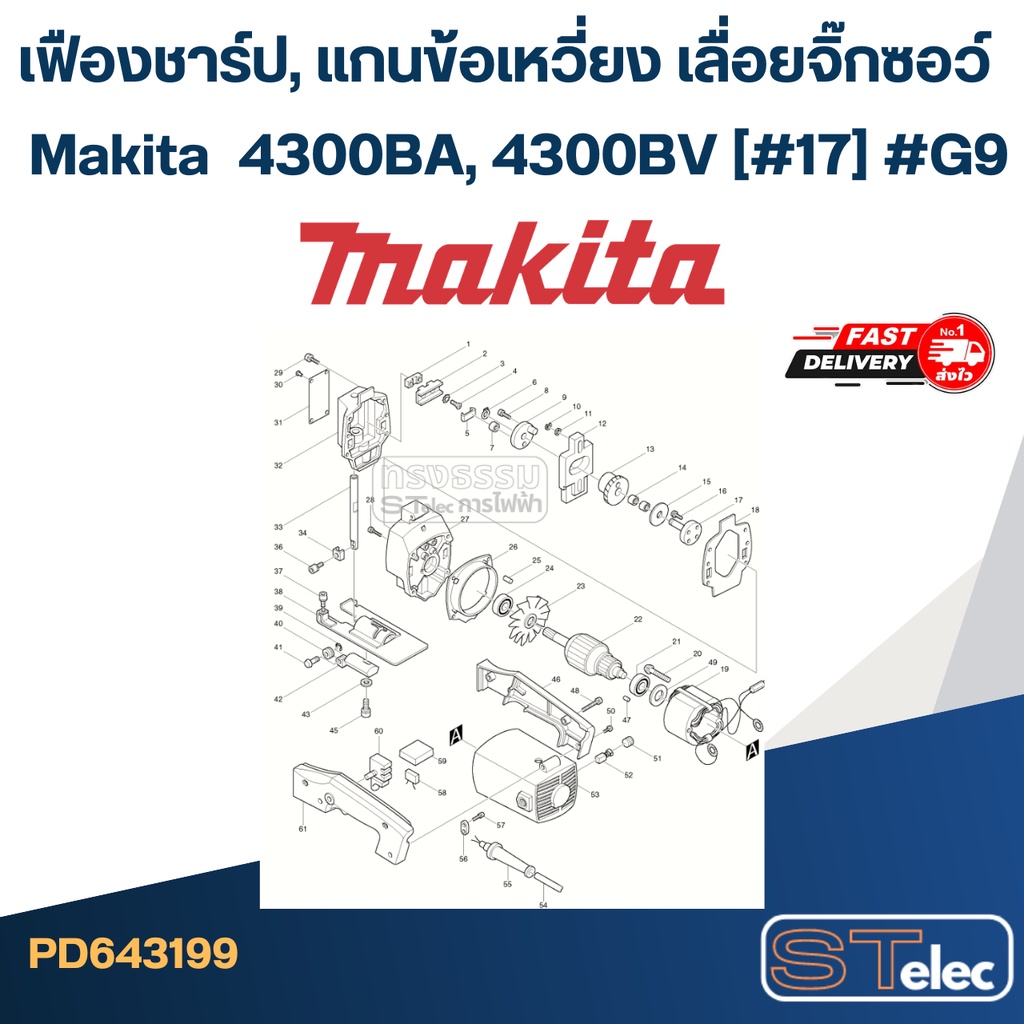 เฟืองชาร์ป, แกนข้อเหวี่ยง เลื่อยจิ๊กซอว์ Makita มากีต้า 4300BA, 4300BV (#17) #G9