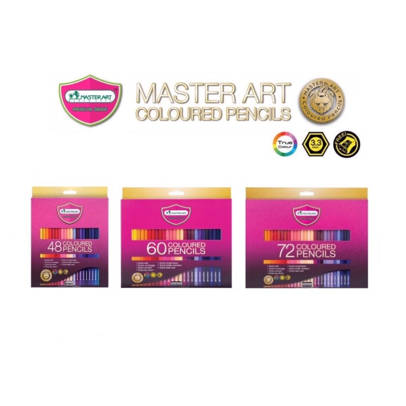 Master Art สีไม้ ดินสอสี 48/60/72 สี (หัวเดียว) แถมฟรีกบเหลา