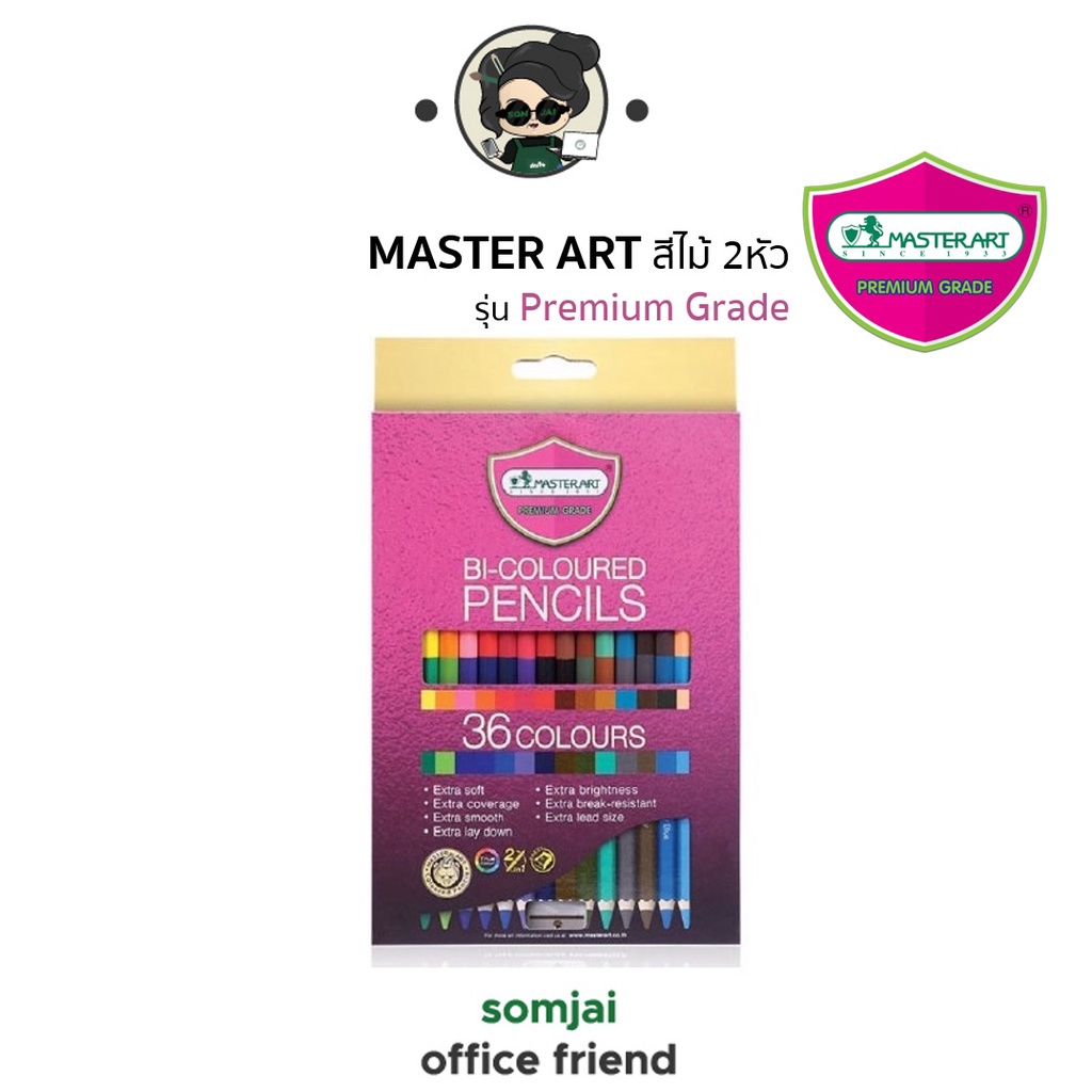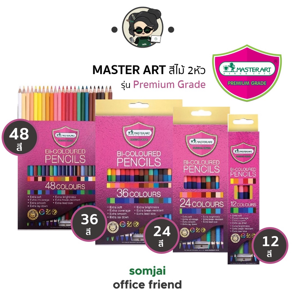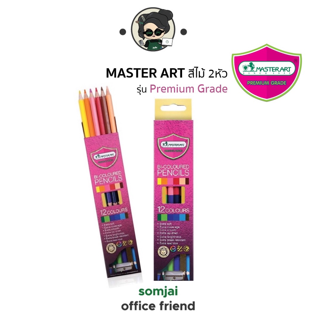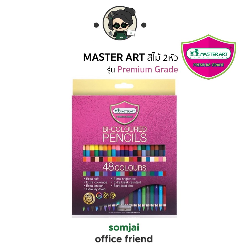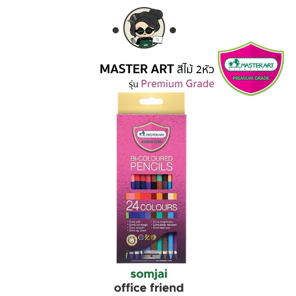 Master Art มาสเตอร์อาร์ต ดินสอสีไม้ชนิด 2 หัว รุ่น Premium Grade จำนวน 12 – 48 สี Set 1