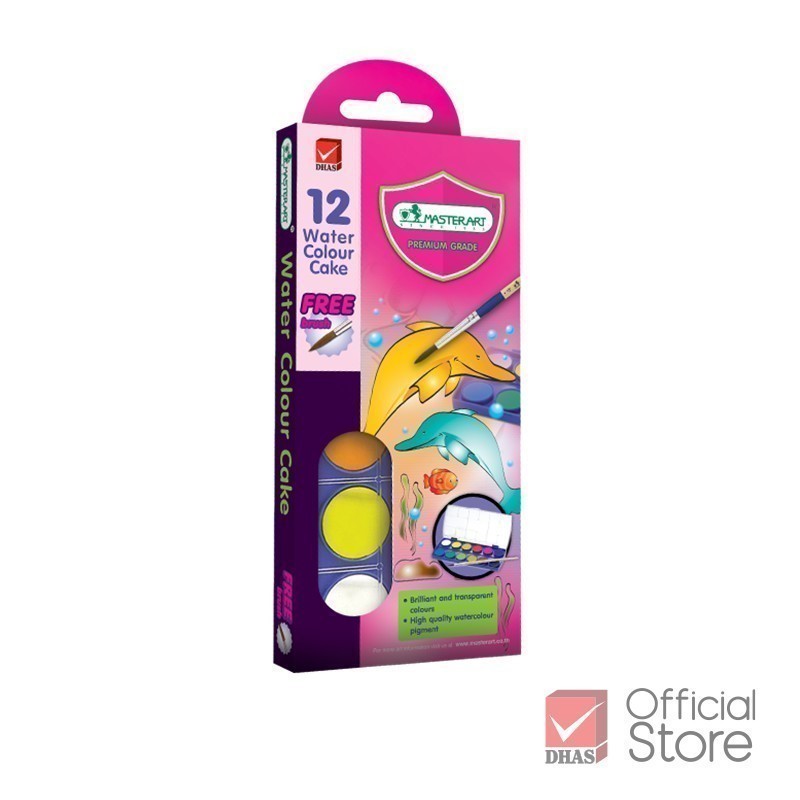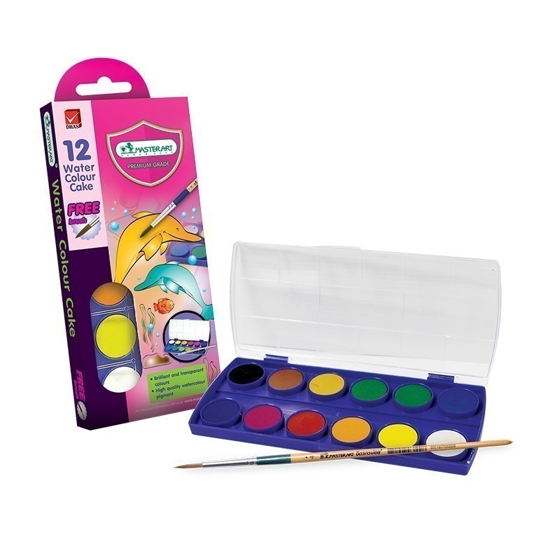 Master Art สีน้ำ สีน้ำก้อน 12 สี กล่องพลาสติก แถมพู่กัน จำนวน 1 กล่อง
