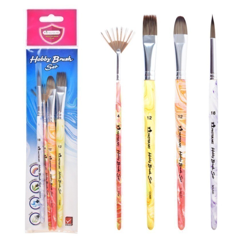 Master Art มาสเตอร์อาร์ต พู่กัน ชุดพู่กันฮอบบี้ No. 4/12/18 จำนวน 1 ชุด