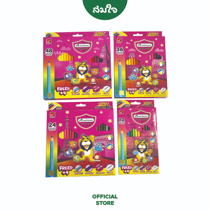 Master Art มาสเตอร์อาร์ต ดินสอสีไม้ สีไม้ ซุปเปอร์ไบรท์ แท่งยาว 12สี 24สี 36สี 48 สี