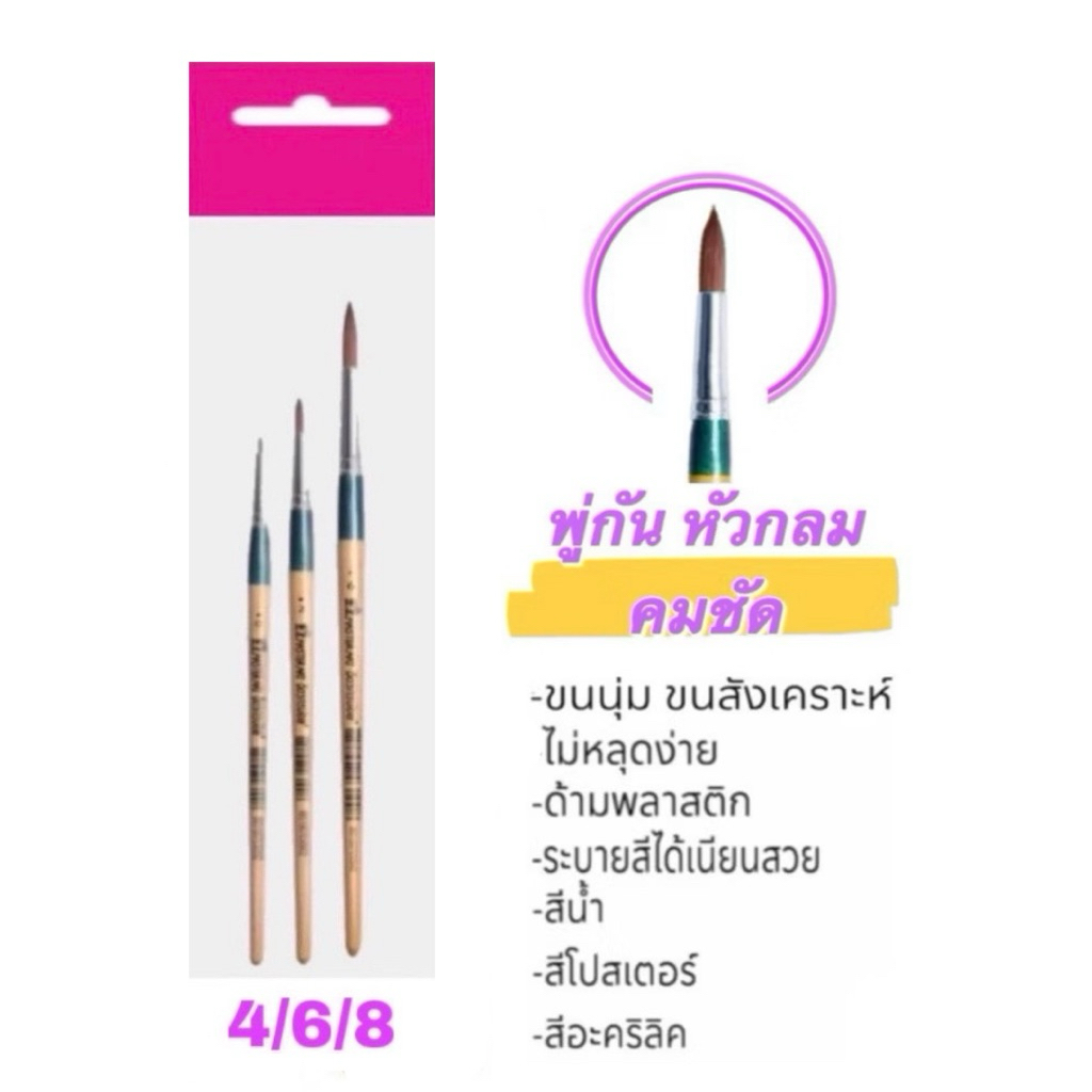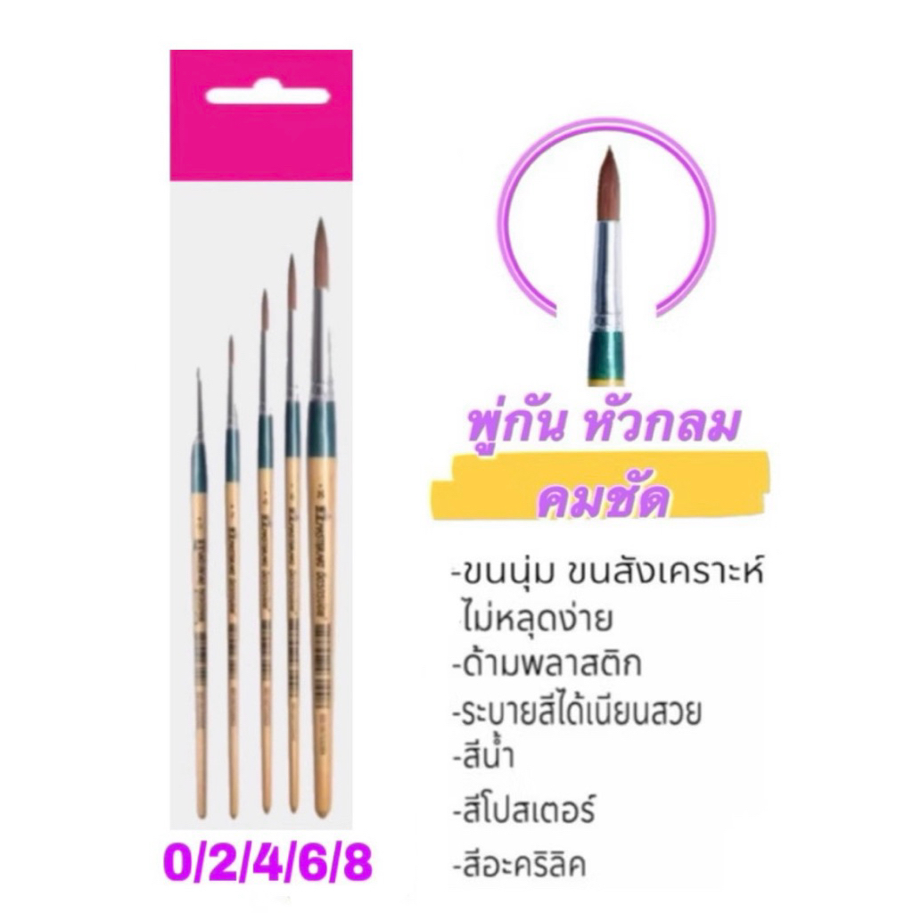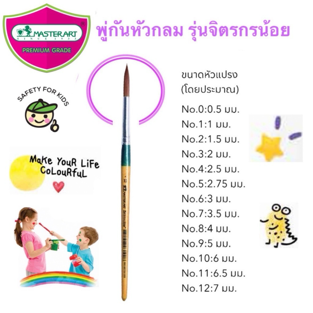 Master art พู่กัน หัวกลม รุ่น จิตรกรน้อย แบบชุด เบอร์ 0 2 4 6 8, 0 2 6, 4 6 8 และ เบอร์ 12