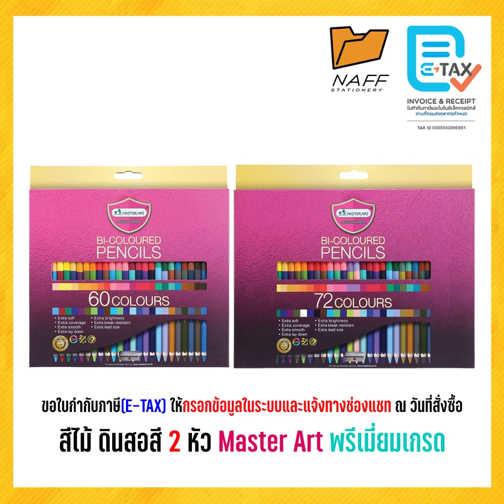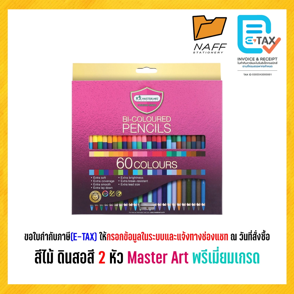สีไม้ Master Art 60 สี รุ่นใหม่ ดินสอสี มาสเตอร์อาร์ต 1 และ 2 หัว Bi / Coloured Pencils Mas