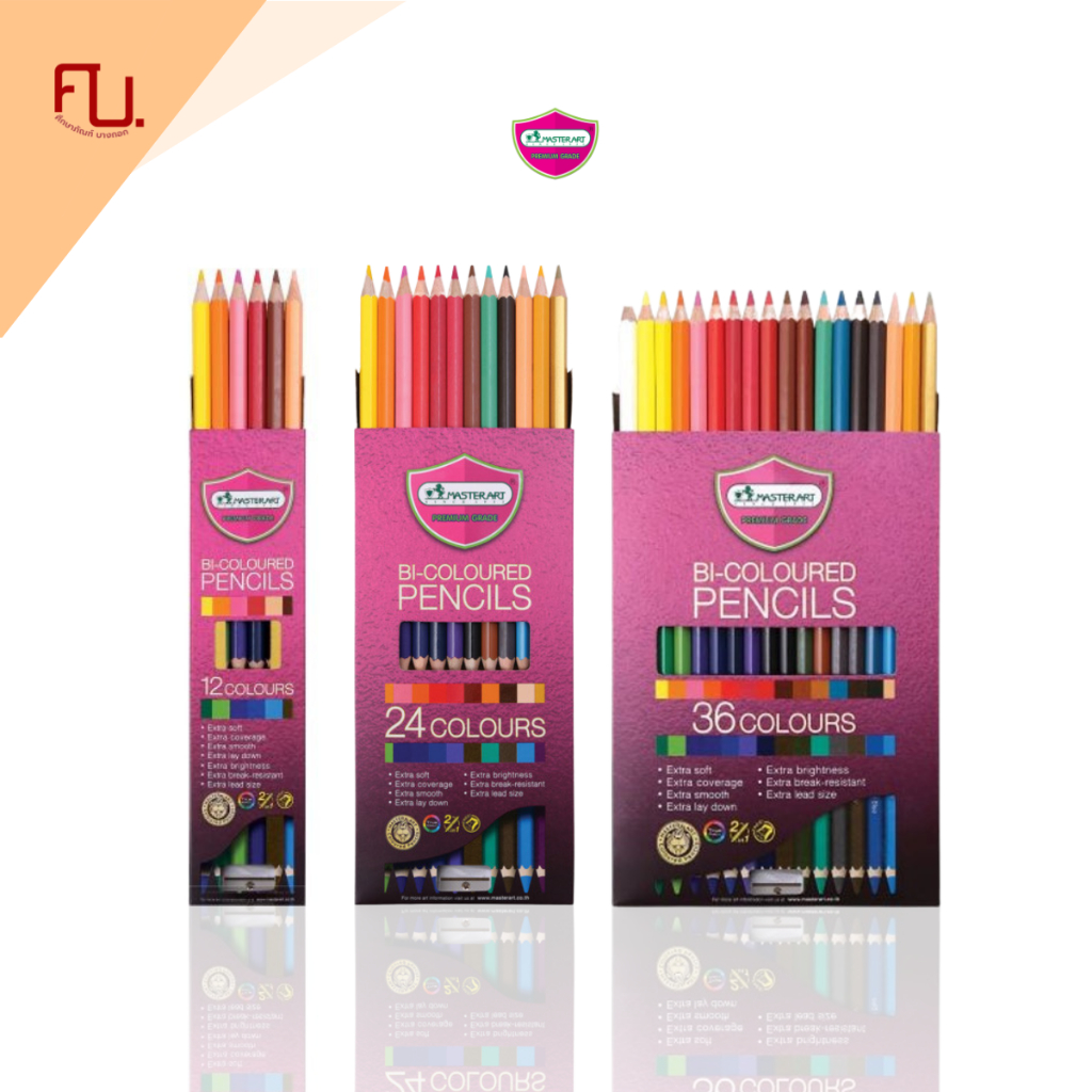 สีไม้ BI-Colored 2หัว ดินสอสีนุ่มลื่น Premium 12สี 24สี 36สี จาก Master art / แพ็ค