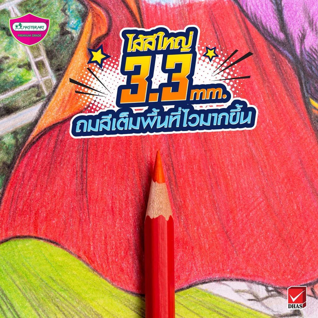 สีไม้ยาว 24 สี MASTER ART รุ่น SUPER BRIGHT แถม ดินสอ ฟองน้ำจับดินสอ กบเหลา ยางลบ