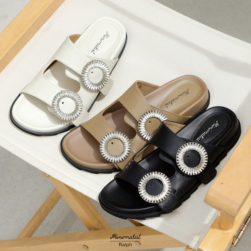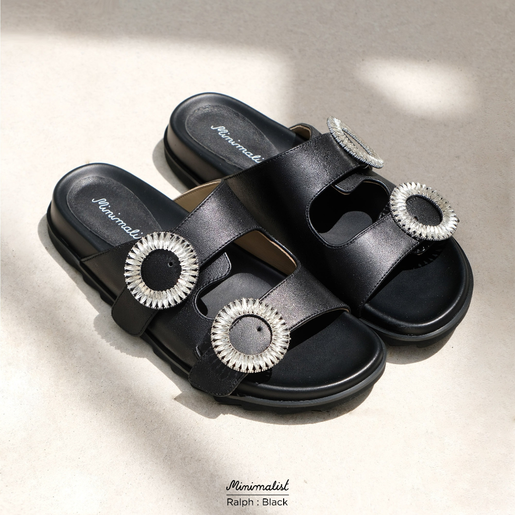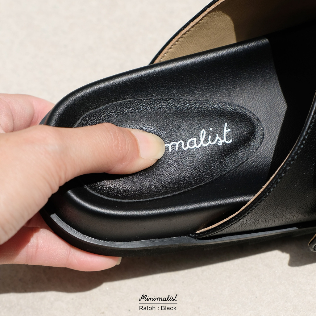 𝐌𝐈𝐍𝐈𝐌𝐀𝐋𝐈𝐒𝐓 รองเท้าแตะหนังแกะแท้ รุ่น Ralph (Black) หน้าเท้ากว้างใส่ได้