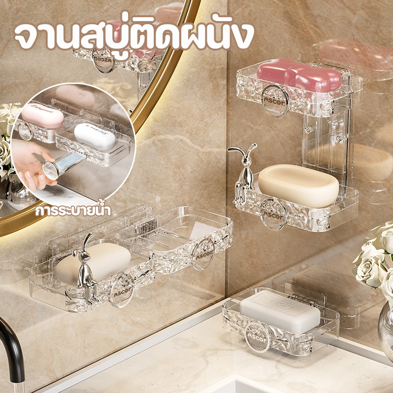 🧼พร้อมส่ง🧼จานสบู่ติดผนัง พร้อมถ้วยดูด ติดผนัง ชั้นเดียว/สองชั้น กันน้ําและกันความชื้น แบบถ้วยดูด ชั้นวางสบู่