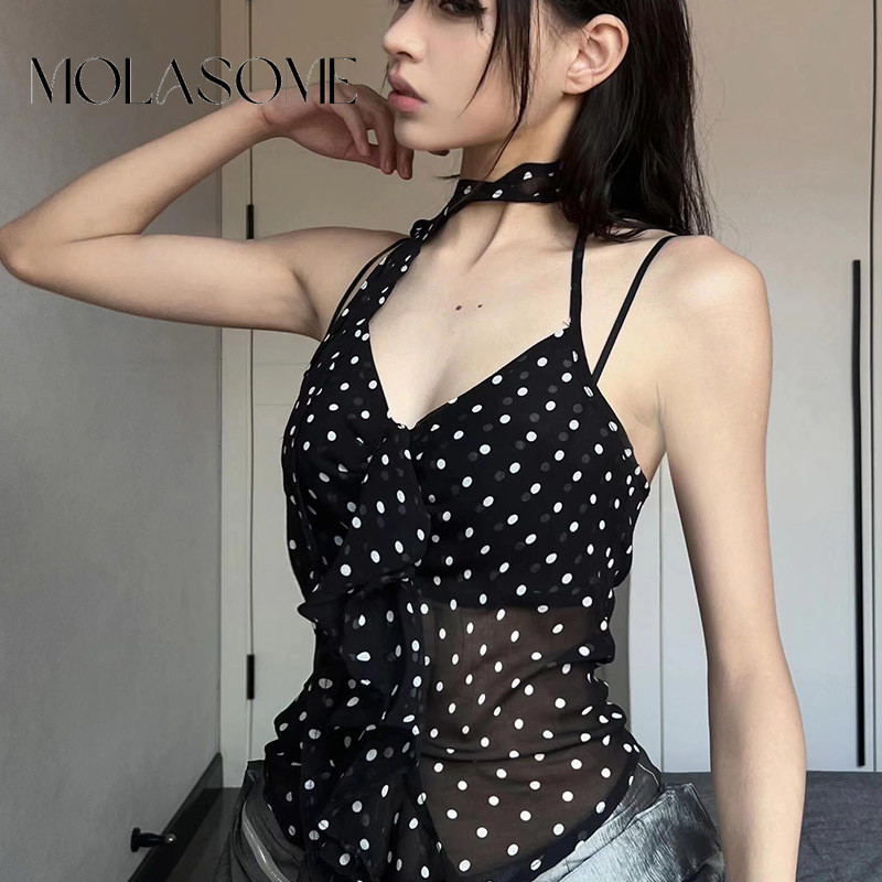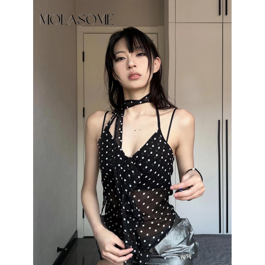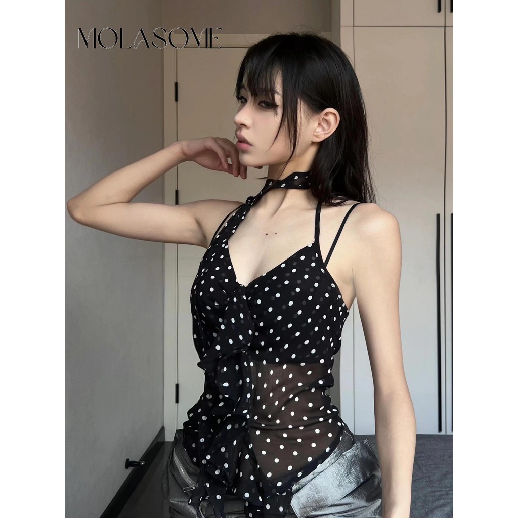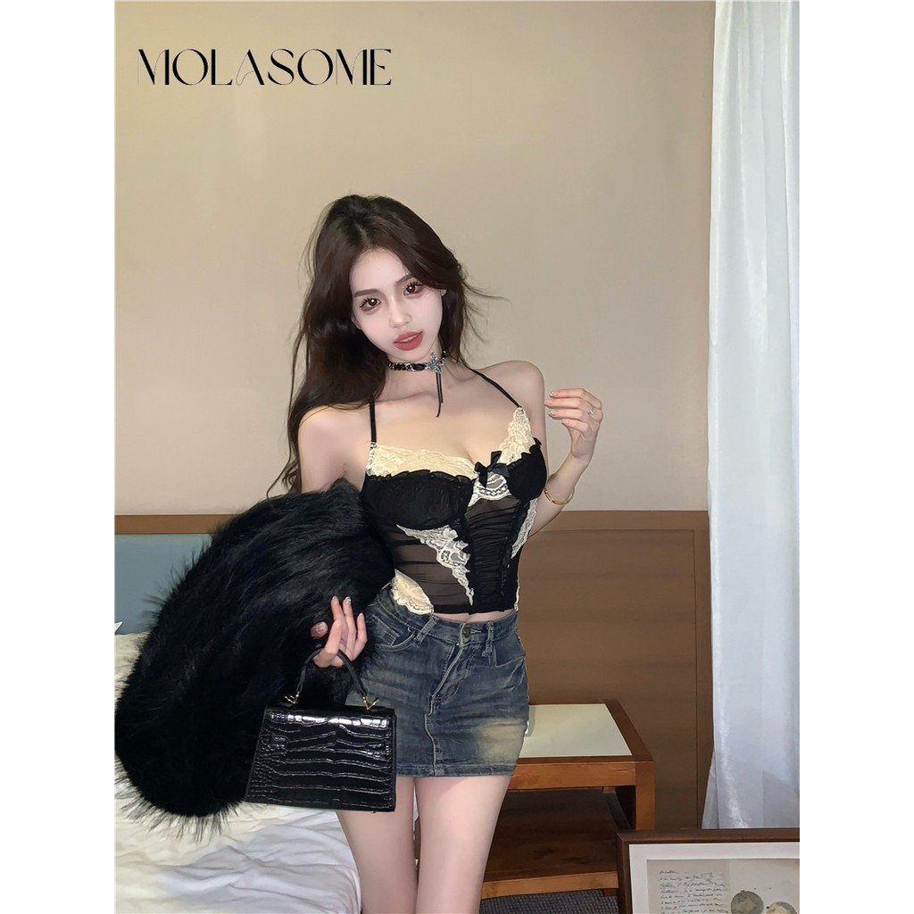 MOLASOME ผู้หญิง 2025 เสื้อกล้าม Low Cut ลูกไม้เซ็กซี่ Slim Fit Casual All Match