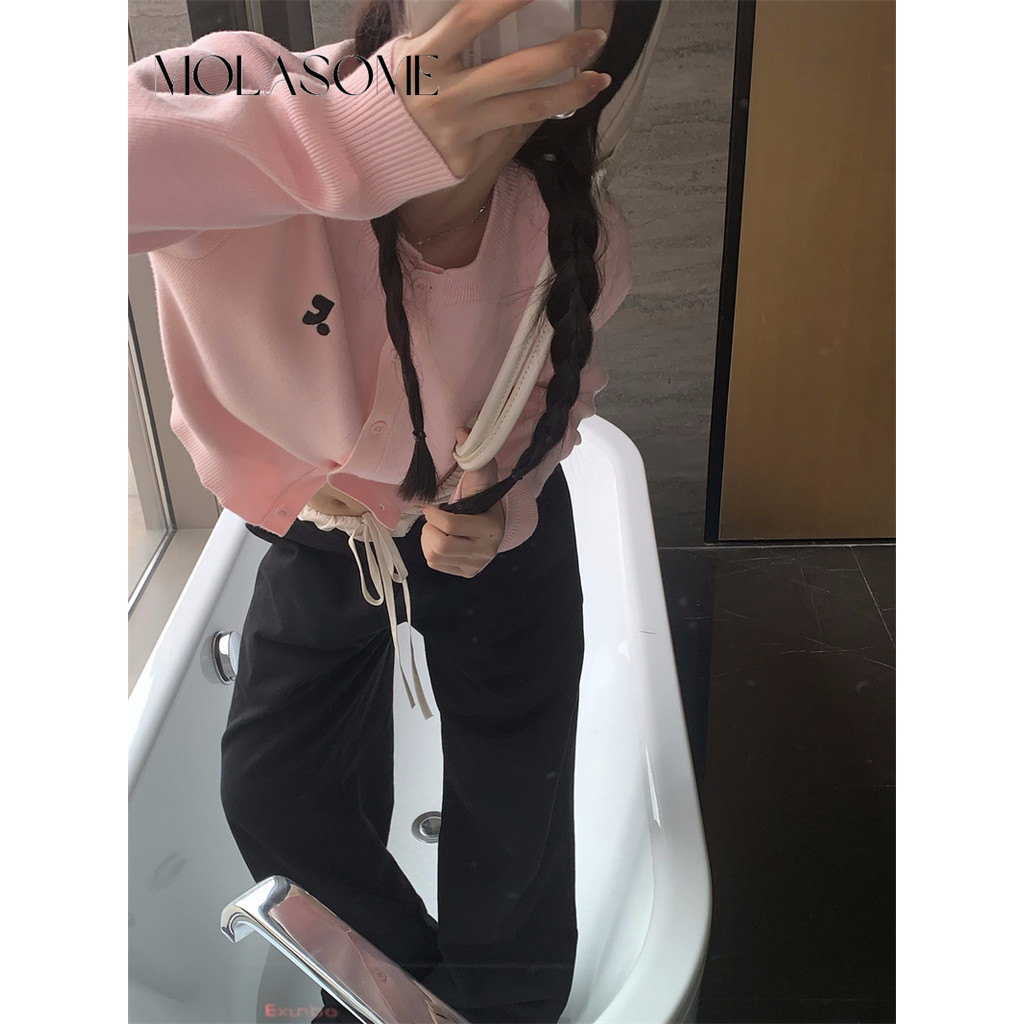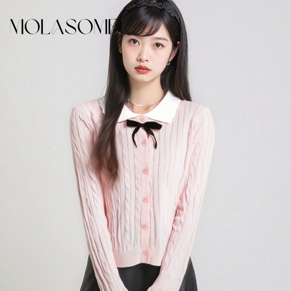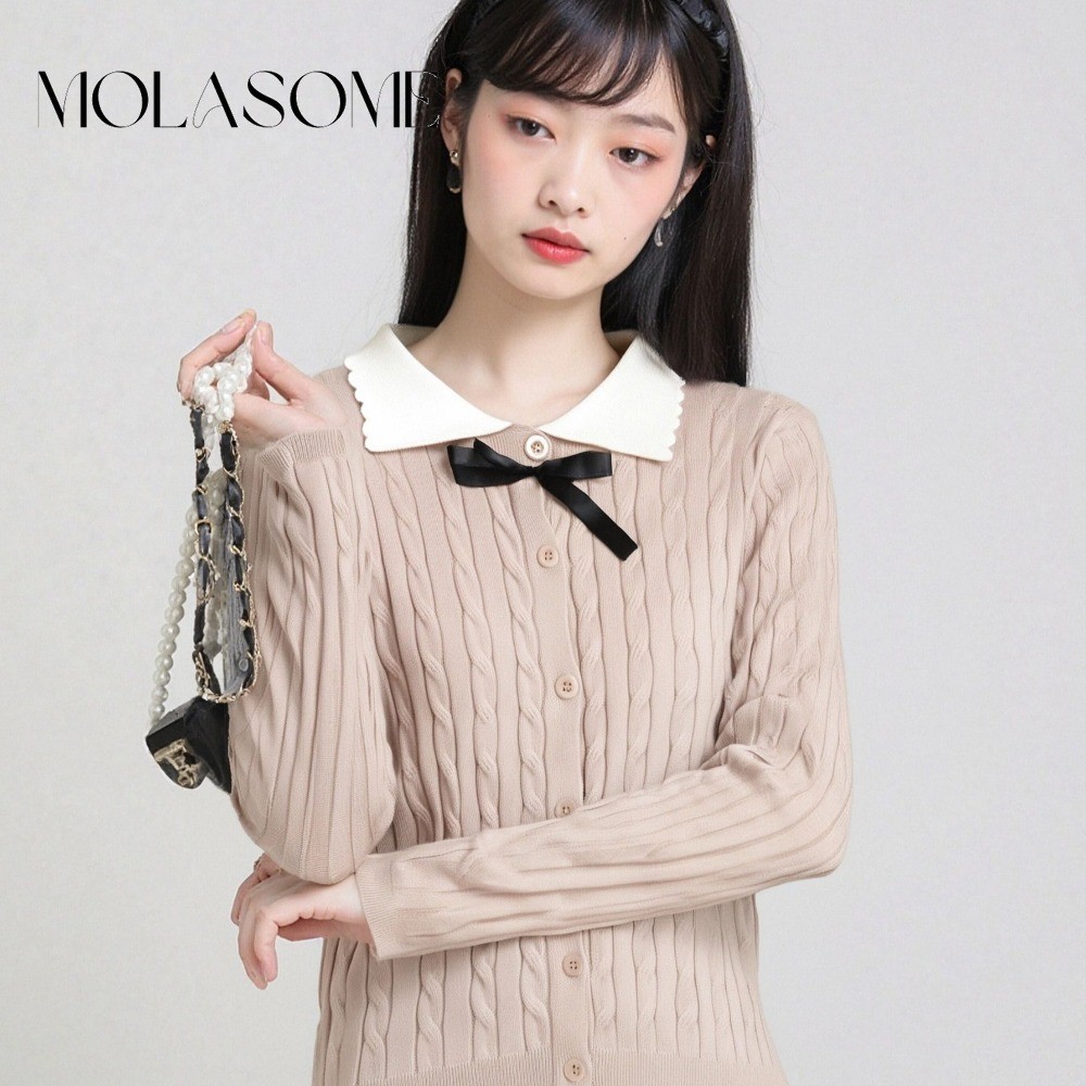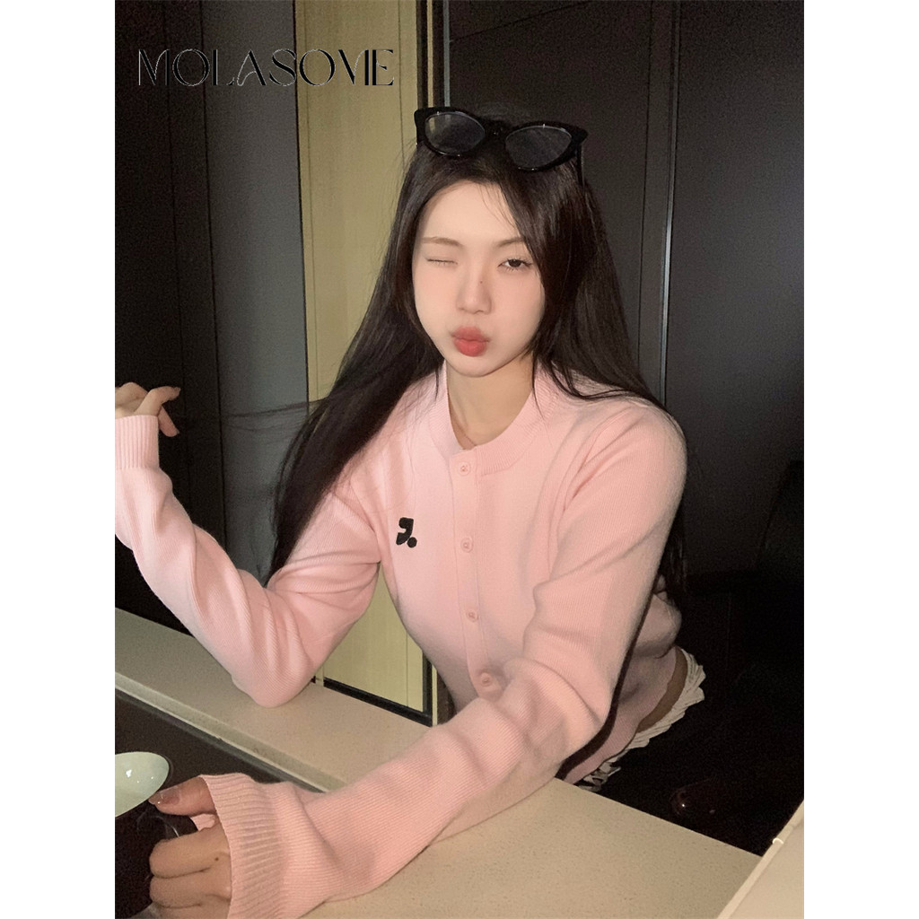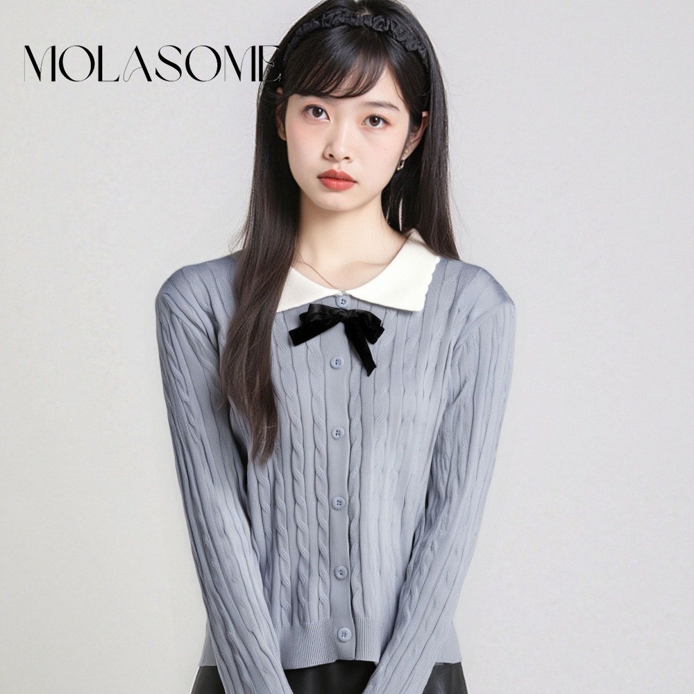 โมลาโซเมะ ผู้หญิงแฟชั่นใหม่สีทึบคอกลมแขนยาวถักเสื้อคาร์ดิแกนทุกการแข่งขัน