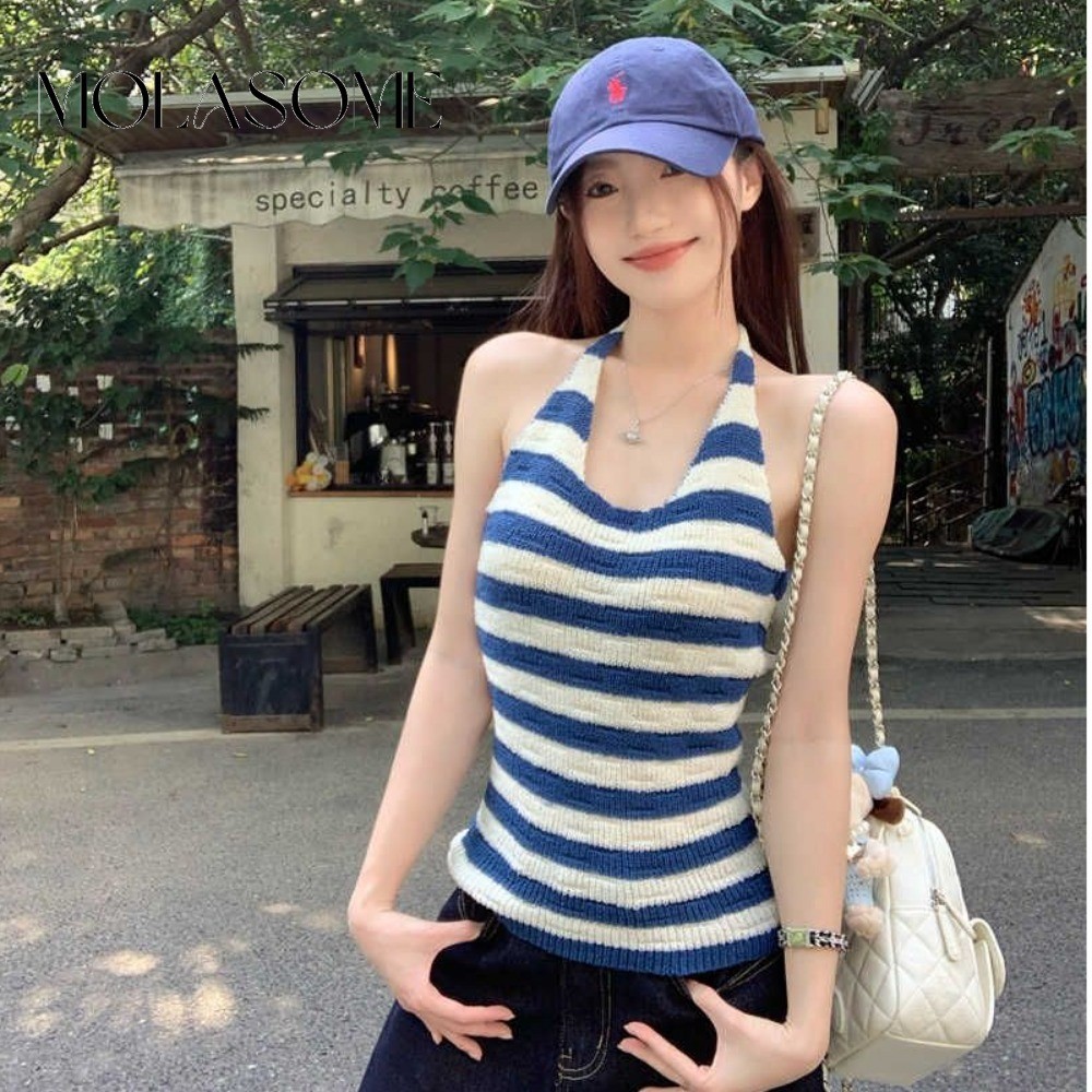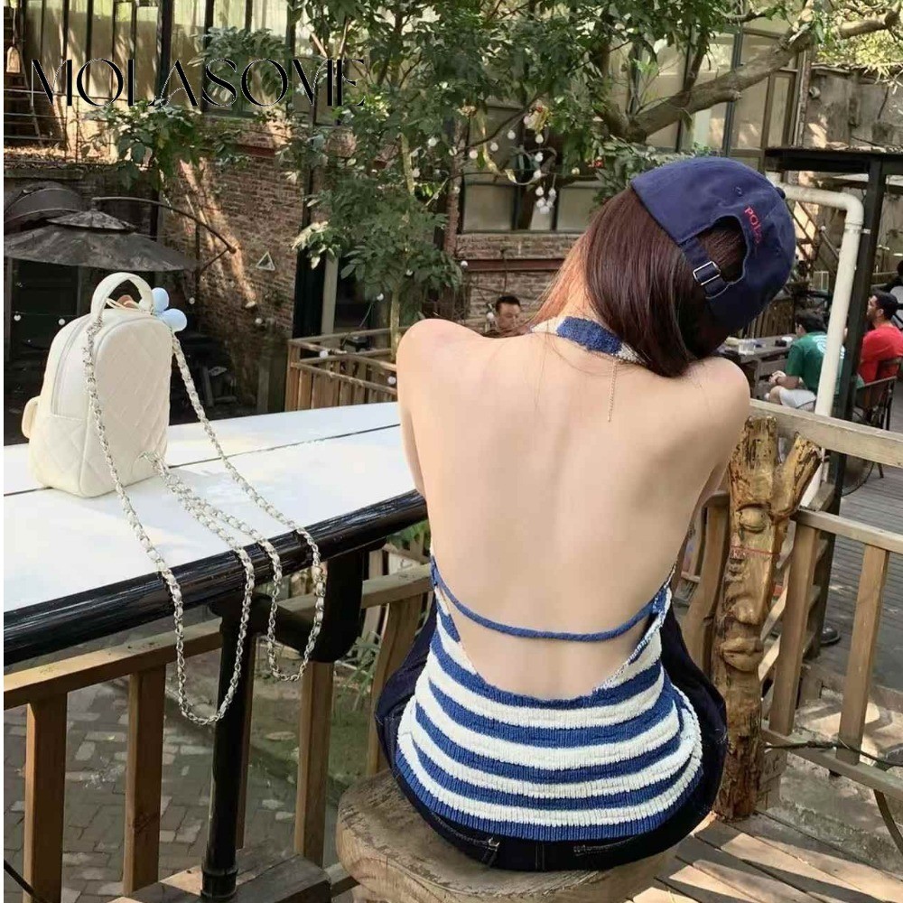 MOLASOME เสื้อกล้าม halter แขนกุด u-คอ contrast สี backless สำหรับผู้หญิงสไตล์ spice girl