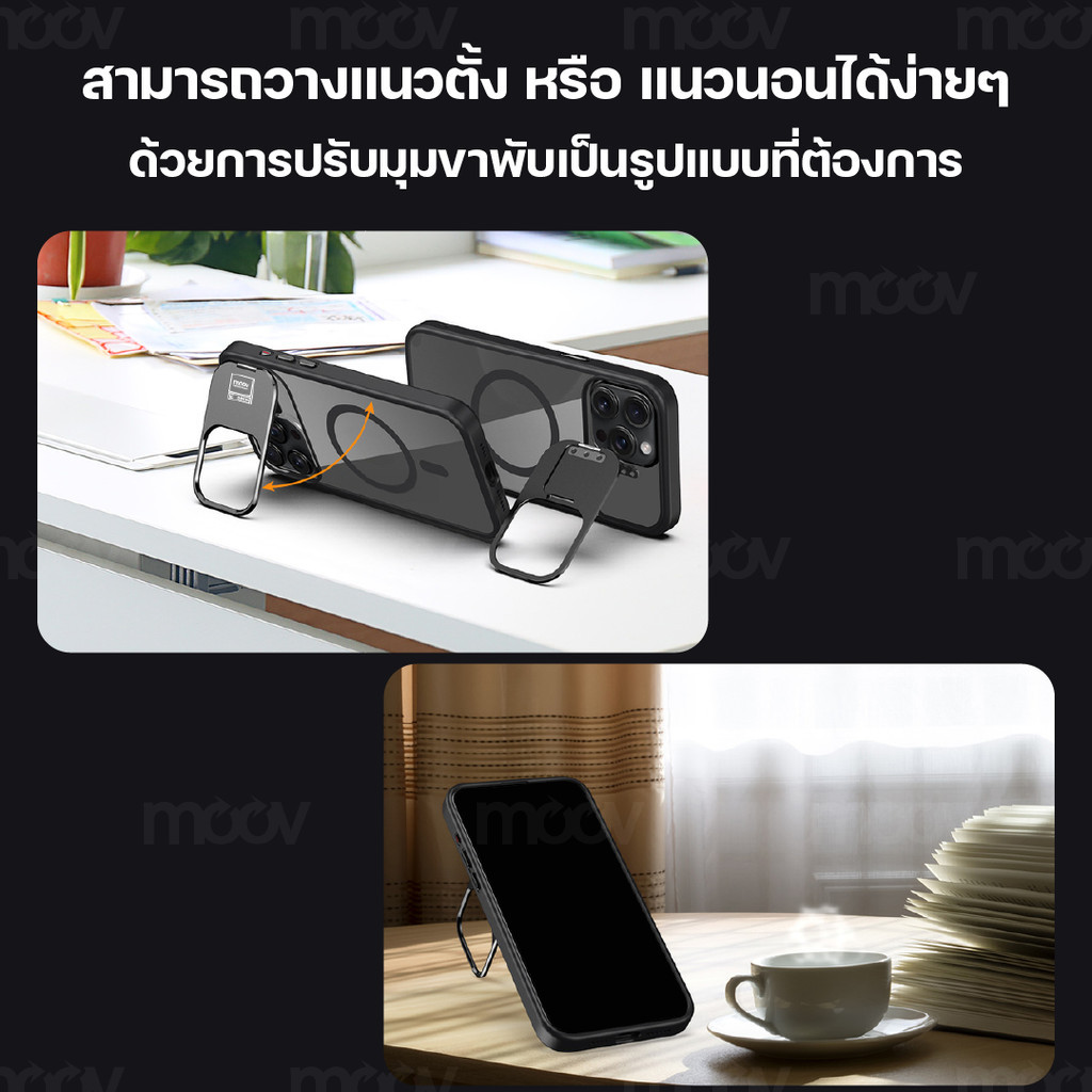 [148บ.โค้ดคุ้ม] Moov CS06 เคสแม่เหล็ก Magnetic Case เคสมือถือ กันกระแทก มีขาตั้ง พับได้ For Phone 13 14 15