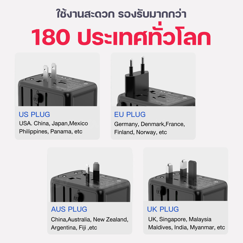 [157บ.ลดใหญ่] Moov TA01 หัวแปลงปลั๊กไฟ Universal Travel Plug Adapter หัวชาร์จ US AU EU UK ใช้ได้ทั่วโลก