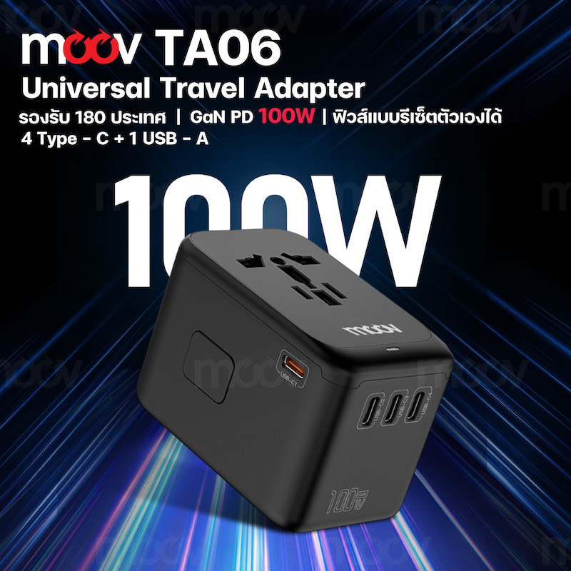 [1299บ.โค้ดคุ้ม] Moov TA06 หัวแปลงปลั๊กไฟ GaN 100W ชาร์จเร็ว Universal Travel Adapter หัวชาร์จ US AUS EU UK