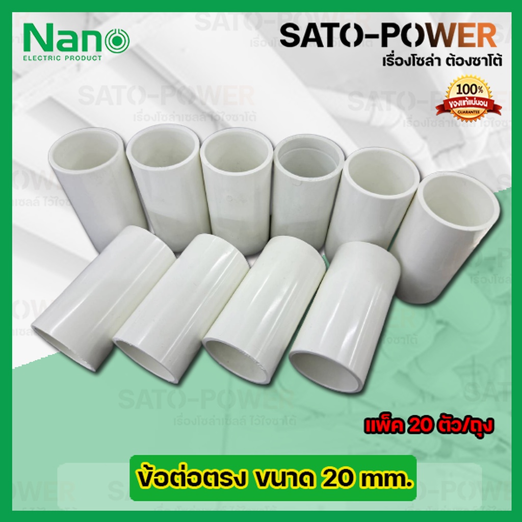 NANO ข้อต่อตรง ข้อต่อตรงเข้าสายไฟสีขาว ขนาด 20มม. 20mm. (20ตัว/ถุง) PVC อุปกรณ์ข้อต่อตรงท่อร้อยสายไฟ ร้อยสายไฟ สายไฟ