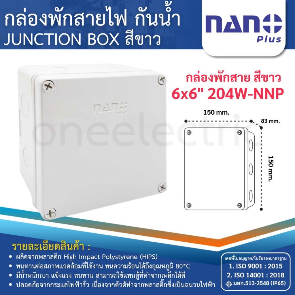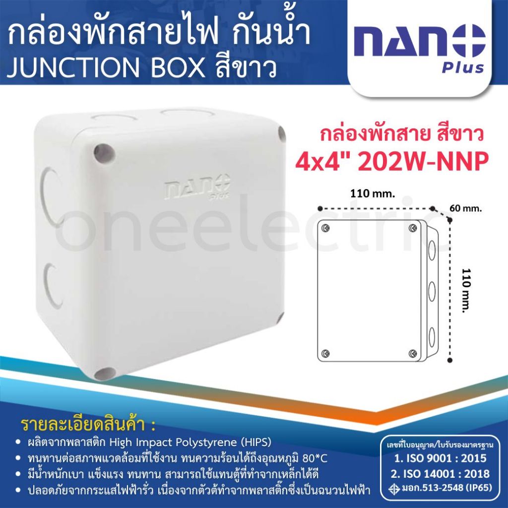 Nano กล่องพักสาย Box กันน้ำ 2×4″ 4×4″ 6×6″ (สีขาว) บล็อกกันน้ำ บล็อคกันน้ำ บ๊อกกันน้ำ บ๊อคกันน้ำ