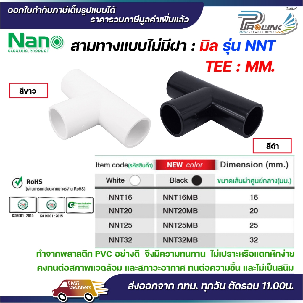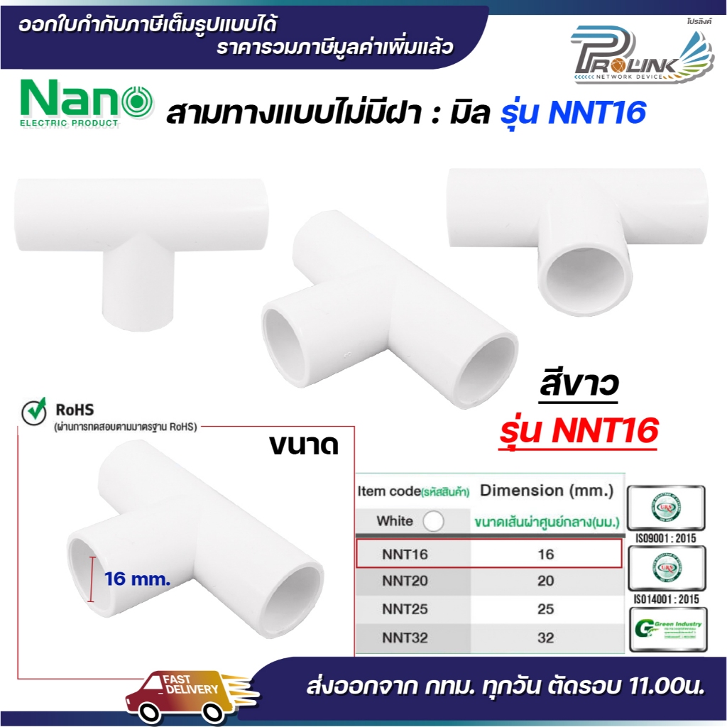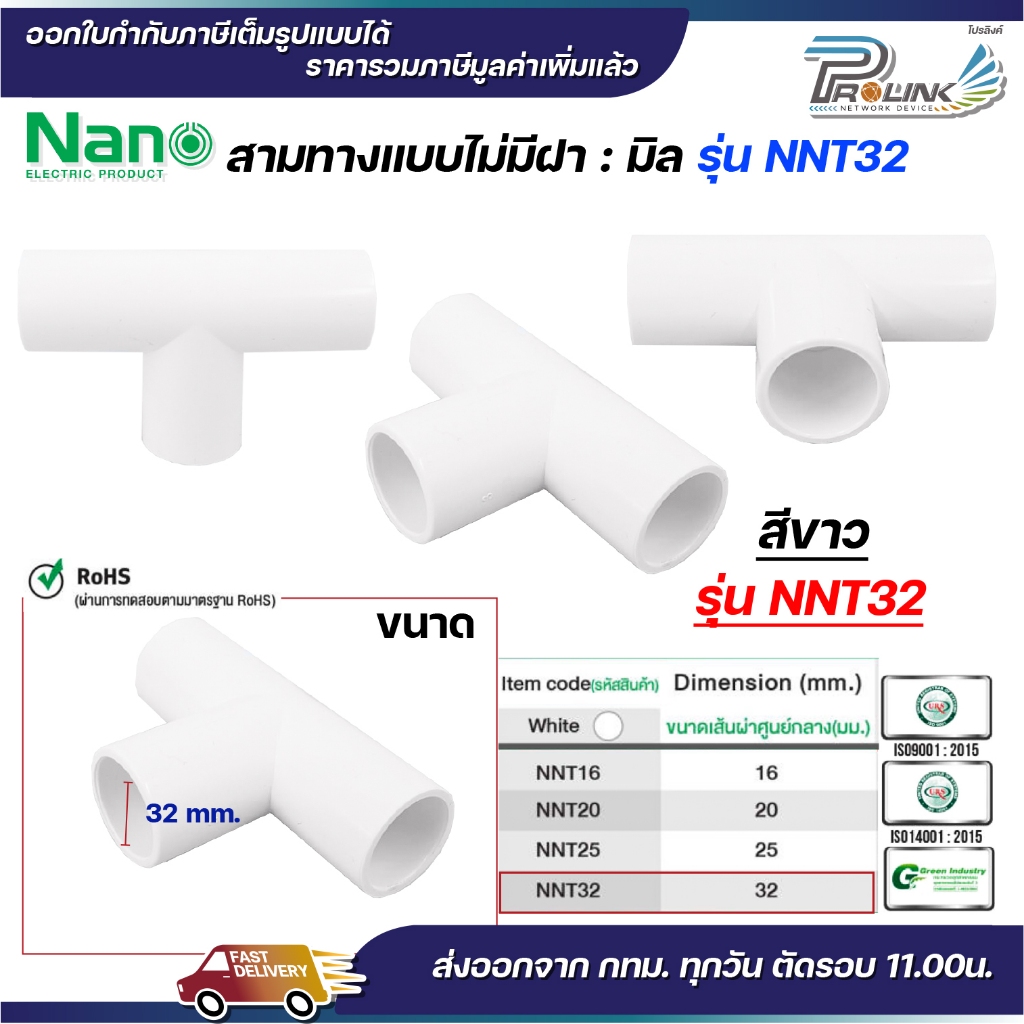 Nano ข้อต่อ ข้อต่อตรง สีขาว 16 มม. 20 มม. 25 มม. 32 มม. (100 ตัว/กล่อง) นาโน