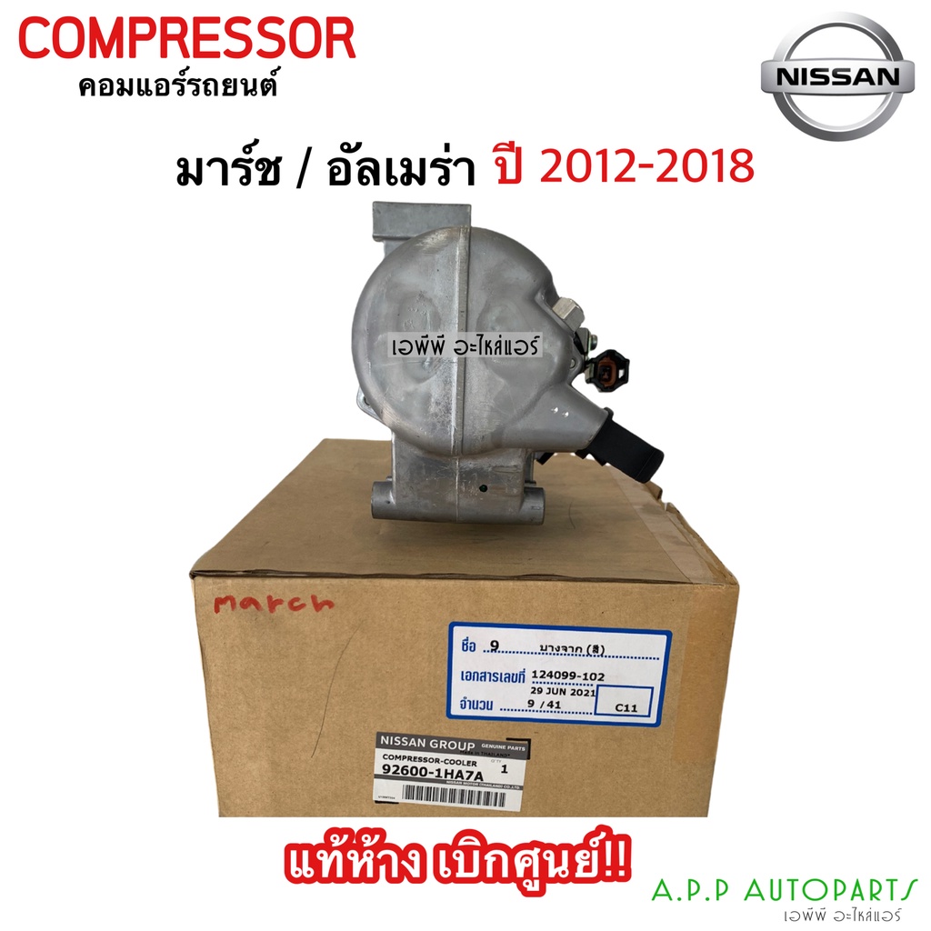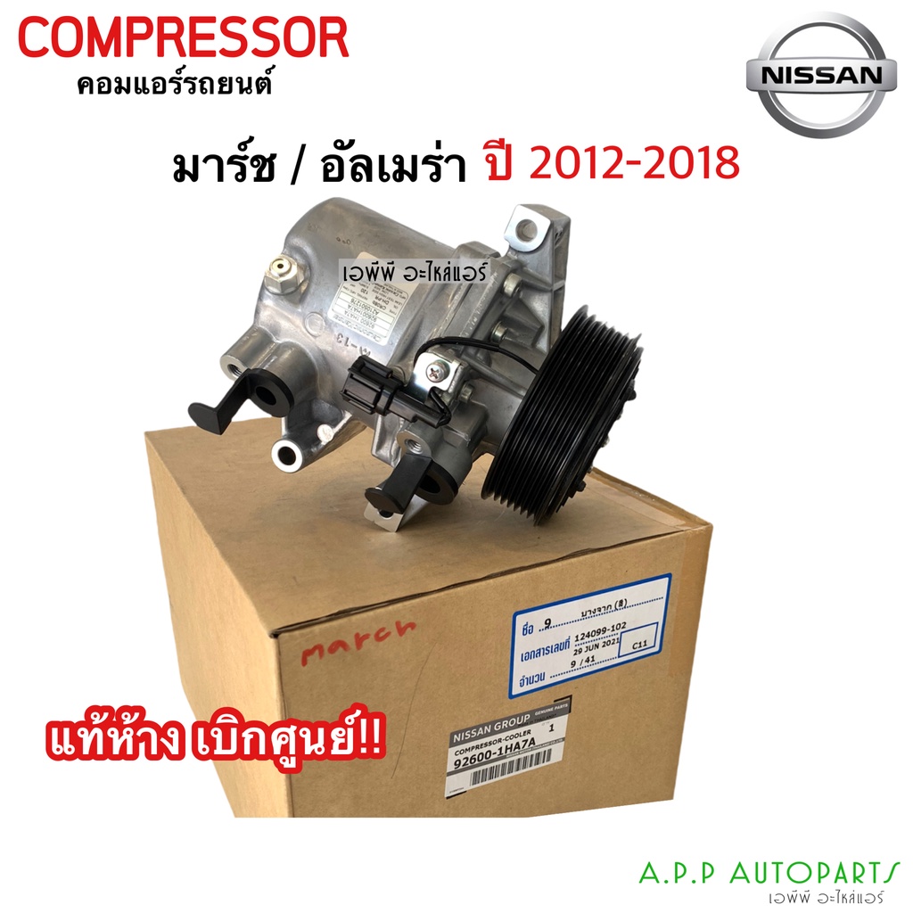 คอมแอร์ นิสสัน มาร์ช อัลเมร่า ปี2012-2018 (แท้ห้าง เบิกศูนย์ 92600-1H7A) Nissan March / Amera Y.2012-2018 คอม