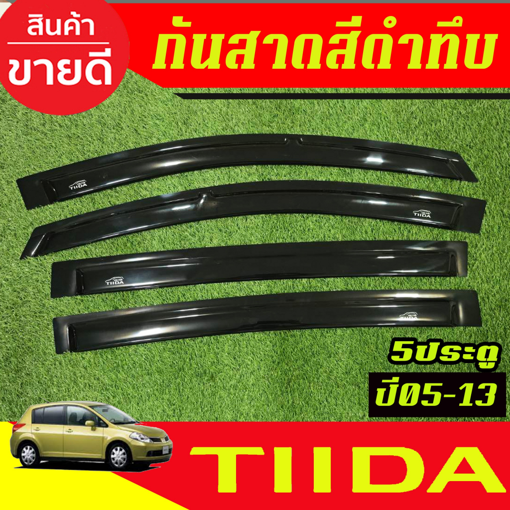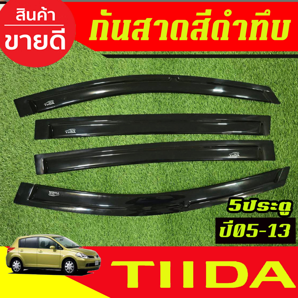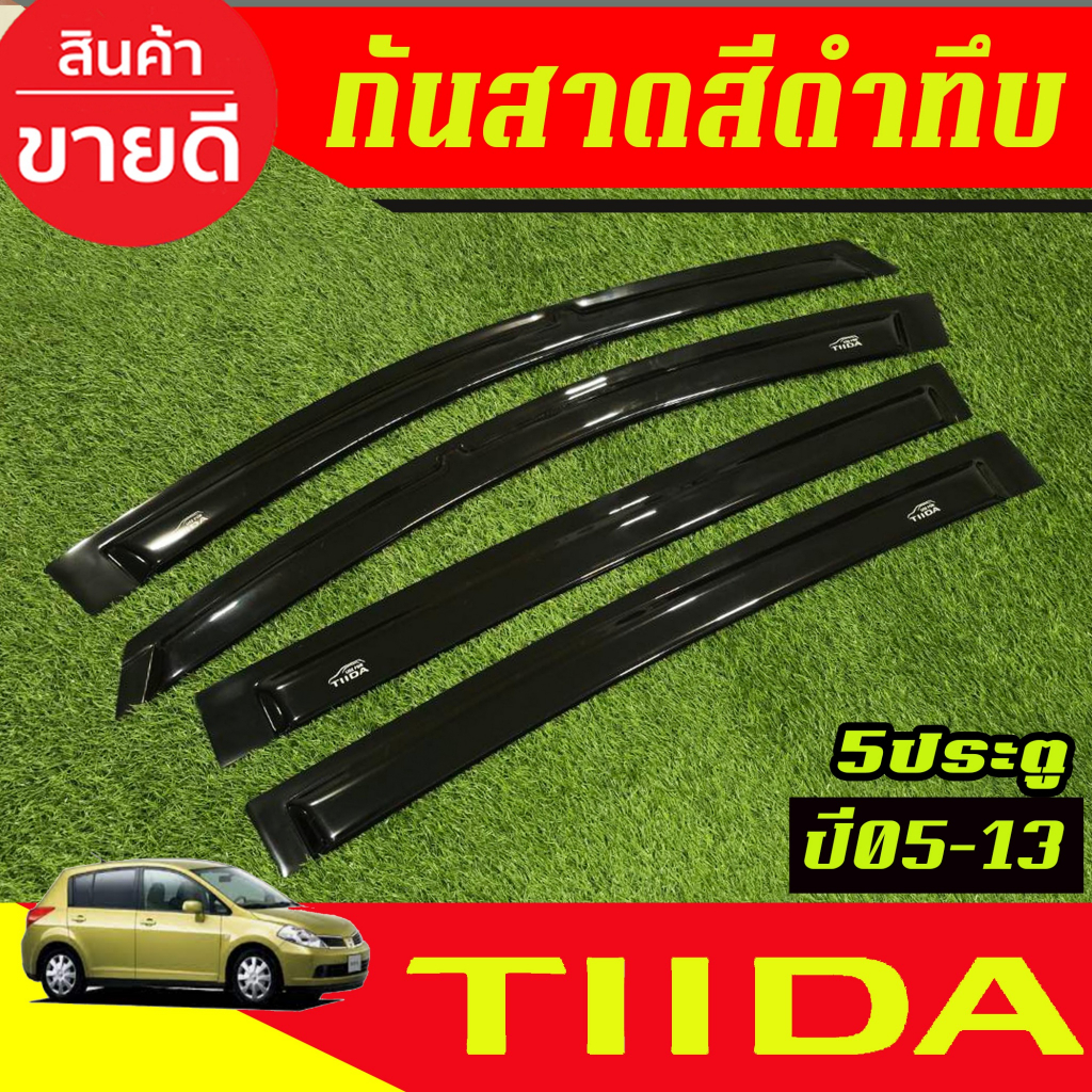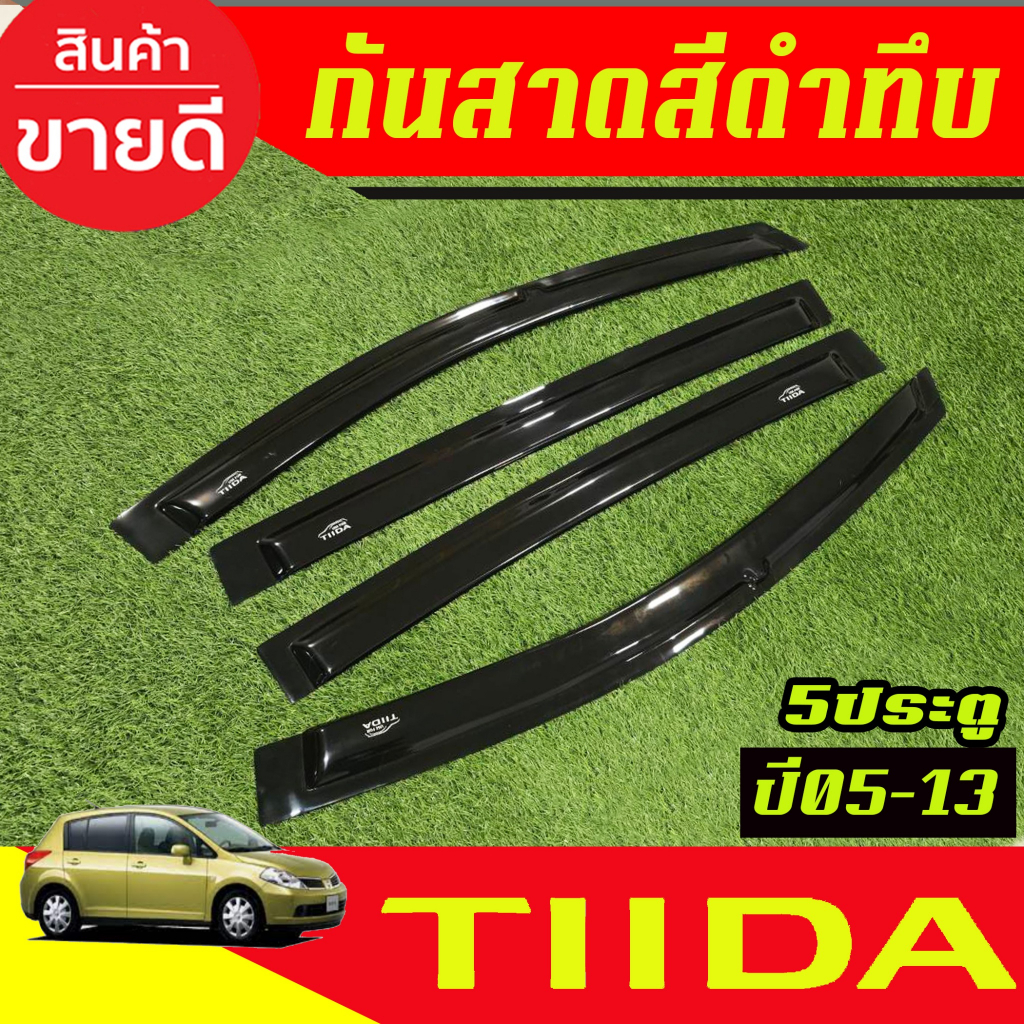 คิ้วกันสาด กันสาดประตู 4ชิ้น สีดำทึบ รุ่น 5ประตู Nissan TIIDA 2005 2006 2007 2008 2009 2010 2011 2012 2013 ใส่รวมกันได้