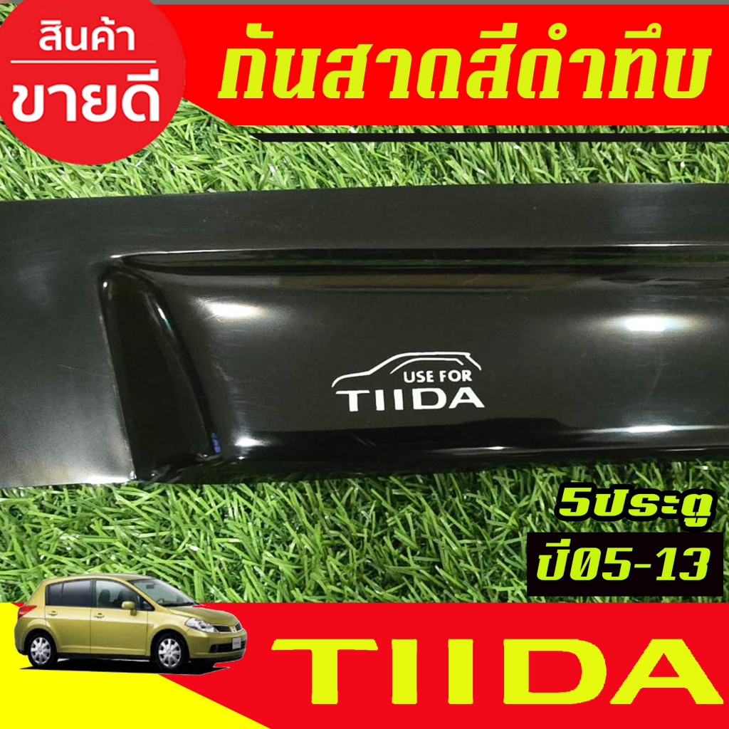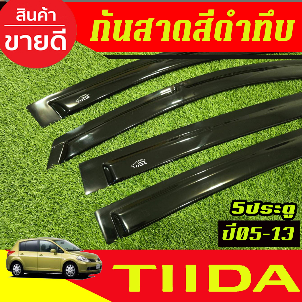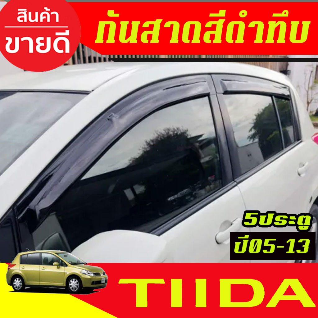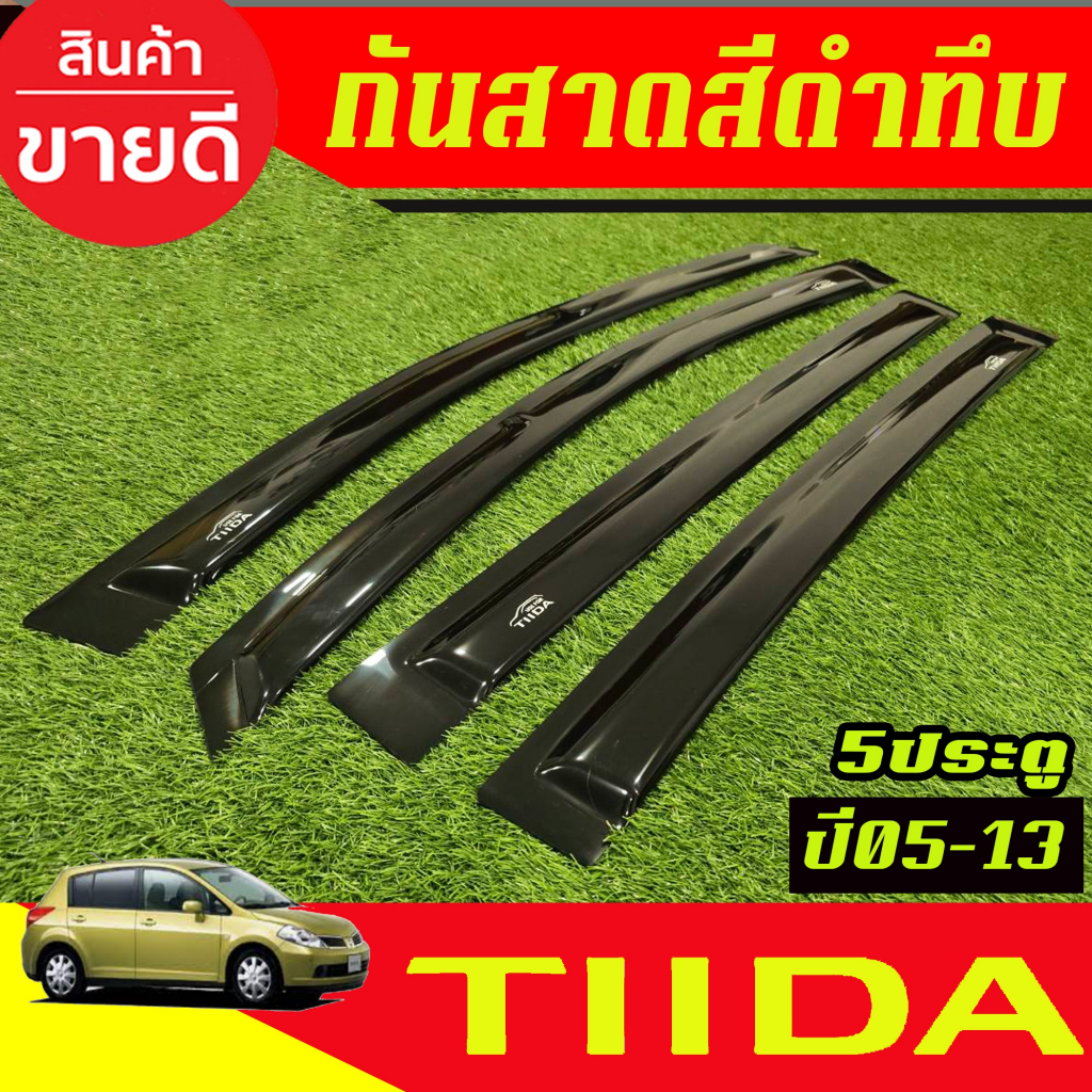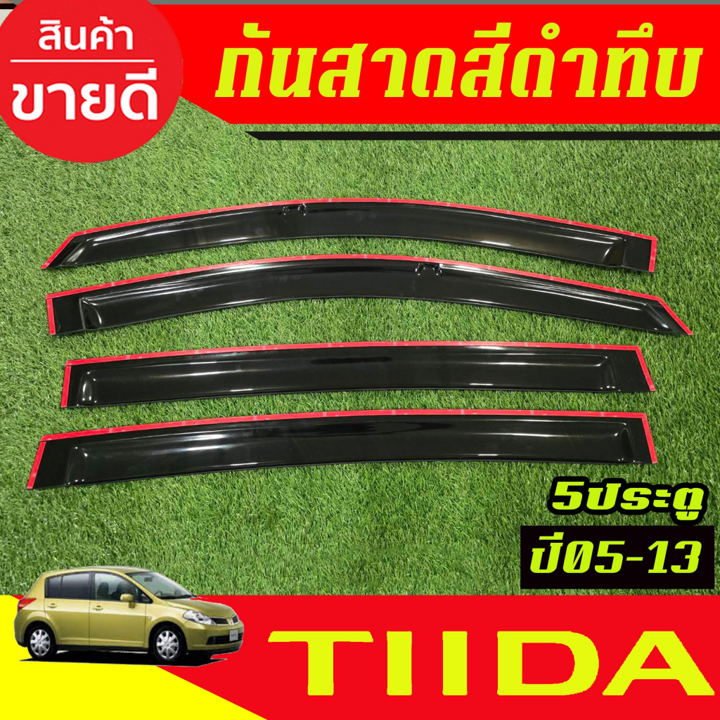 คิ้วกันสาด กันสาดประตู 4ชิ้น สีดำทึบ รุ่น 5ประตู Nissan TIIDA 2005 2006 2007 2008 2009 2010 2011 2012 2013 ใส่รวมกันได้
