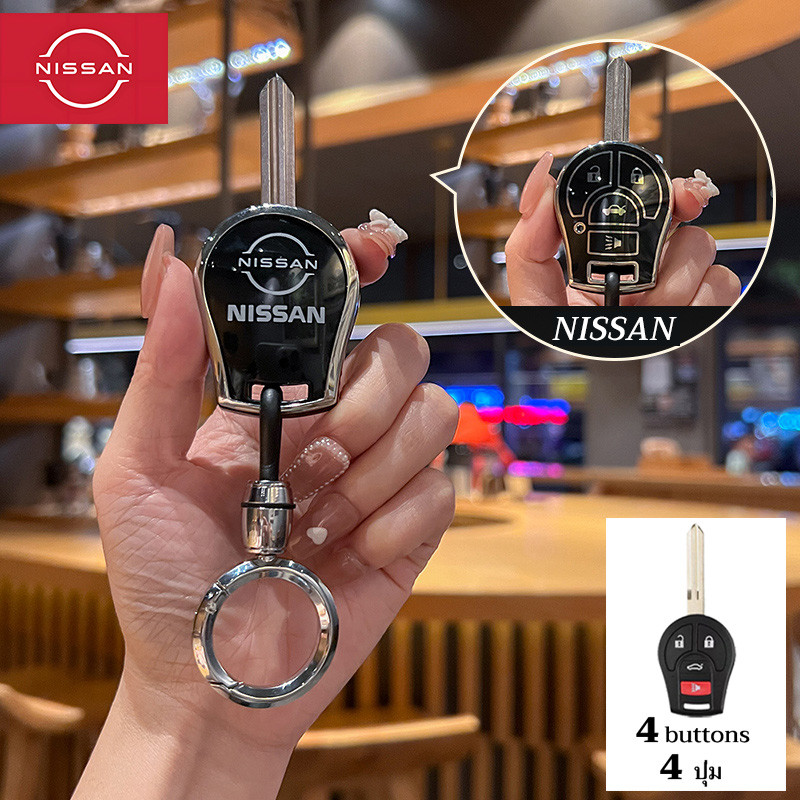 ปลอกกุญแจรถยนต์ NISSAN ด้านหลัง-แกะสลักสําหรับ Almera March Navara พวงกุญแจรถที่ละเอียดอ่อน เคสกุญแจรถ