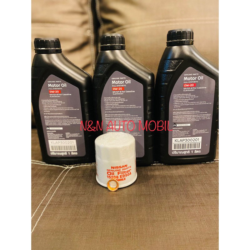 น้ำมันเครื่อง ECO CAR (อีโก้คาร์)นิสสัน 0W-20 จำนวน 3 ลิตร+กรองเครื่อง+แหวนรอง แท้ศูนย์นิสสัน