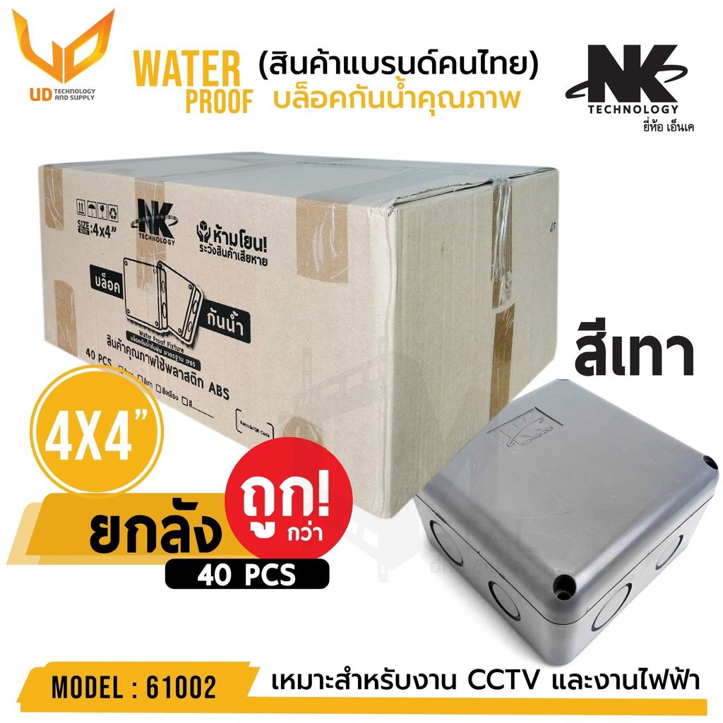 กล่องกันน้ำ ยี่ห้อNK สีเทา (ยกลัง 40 ตัว/ลัง) BOX 4×4 เกรดอย่างเหนียว รหัส61002 แข็งแรง ทนทาน กันน้ำ