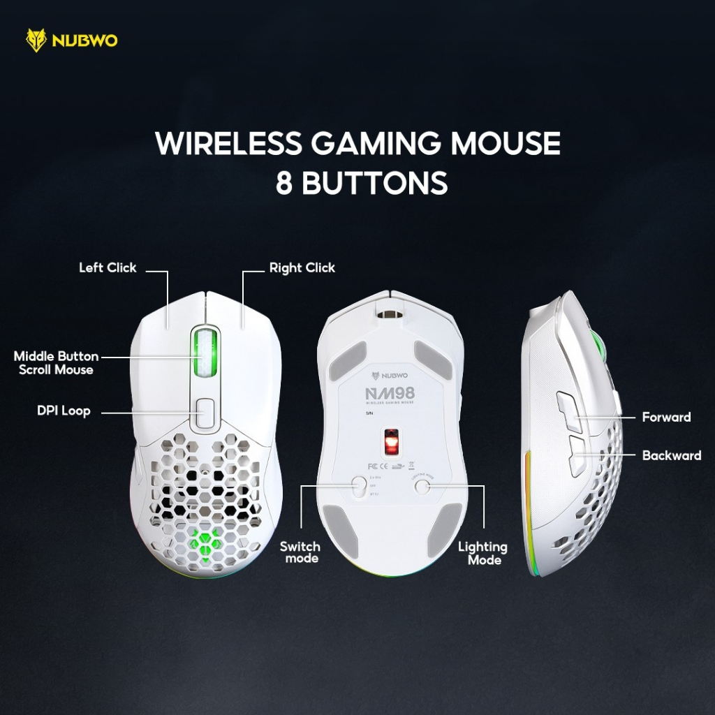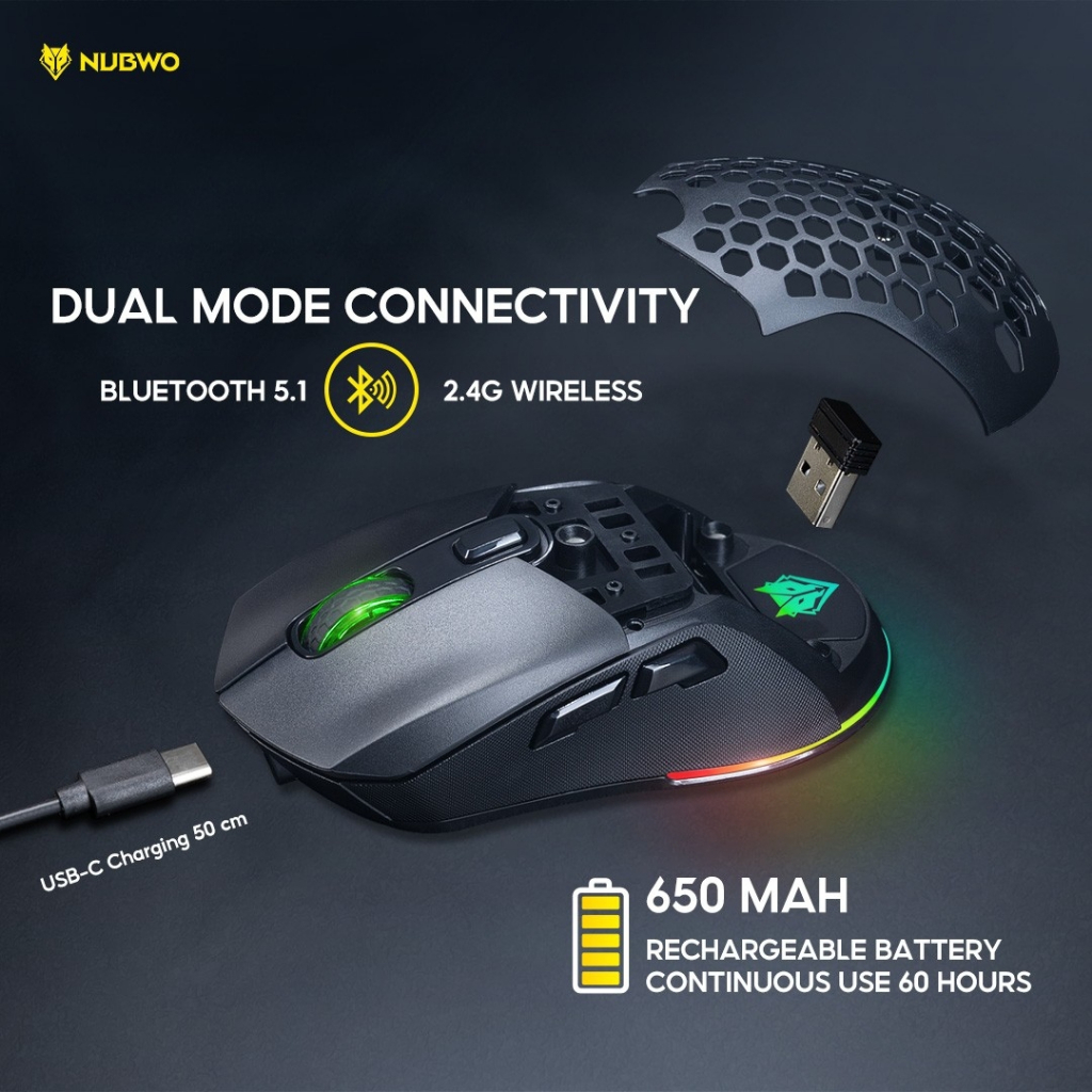 Nubwo เมาส์เกมมิ่งไวร์เลสได้ บลูทูธได้ มีไฟ RGB ปรับ DPI ได้ เปลี่ยนหน้ากากเมาส์ได้ รุ่น NM98 รับประกัน 1 ปี