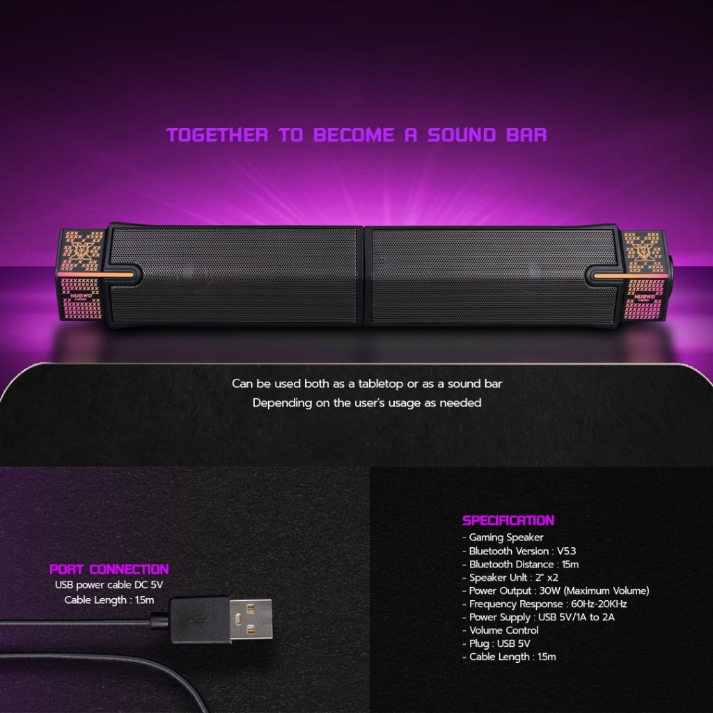 ลำโพงเสียงดี NUBWO (NS10) SPEAKER GAMING ลำโพงสเตอริโอ 2.0 ดีไซน์สวย คอมพิวเตอร์ โน้ตบุ๊ค (NS-10)