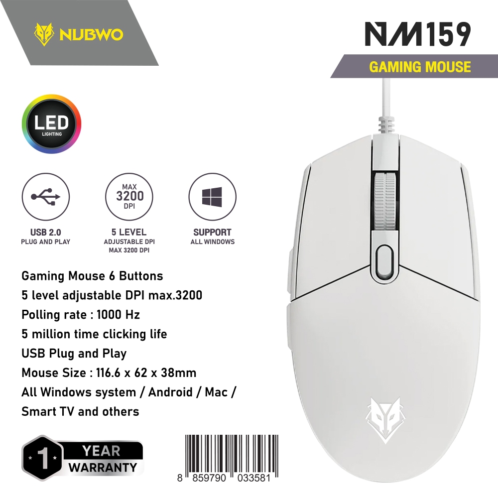 NUBWO-X X42 SOLAKA เมาส์เกมมิ่ง มาโคร Mouse Gaming ดำ/ขาว