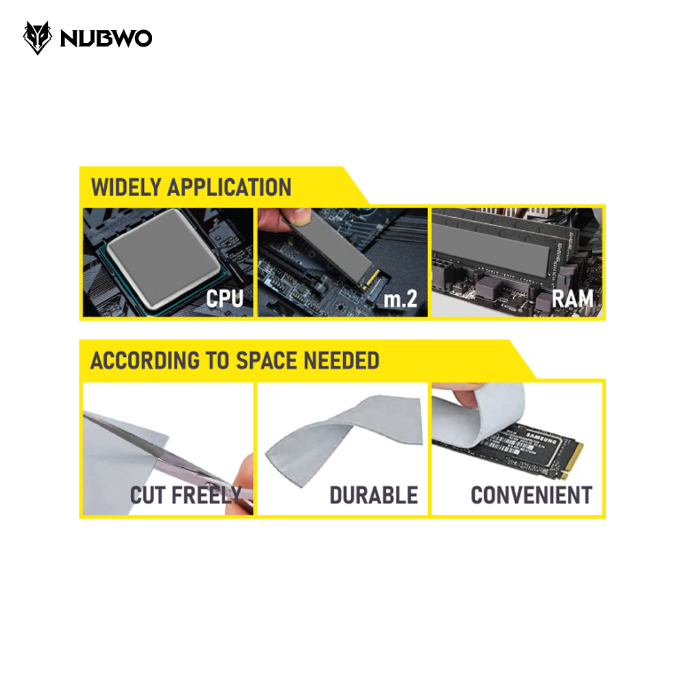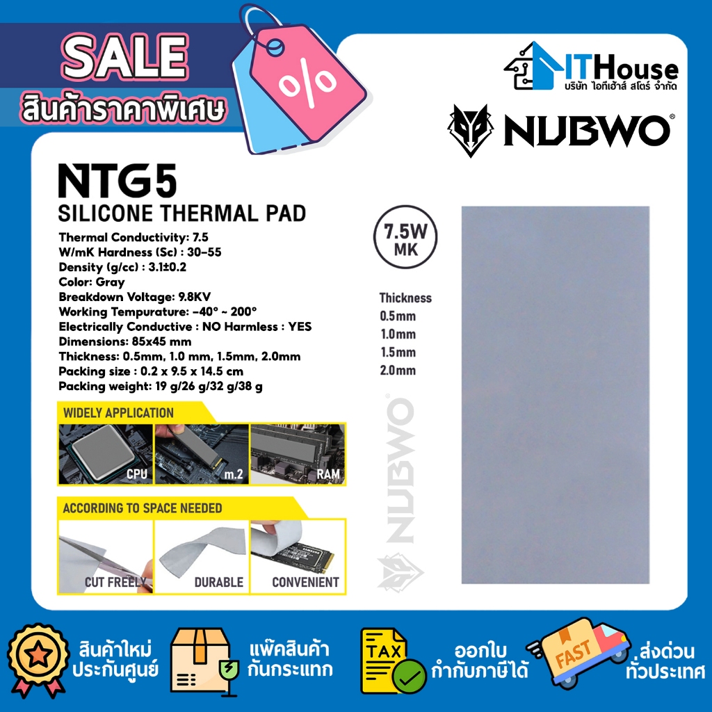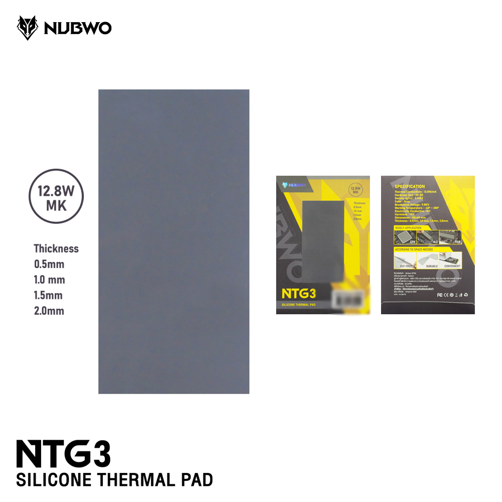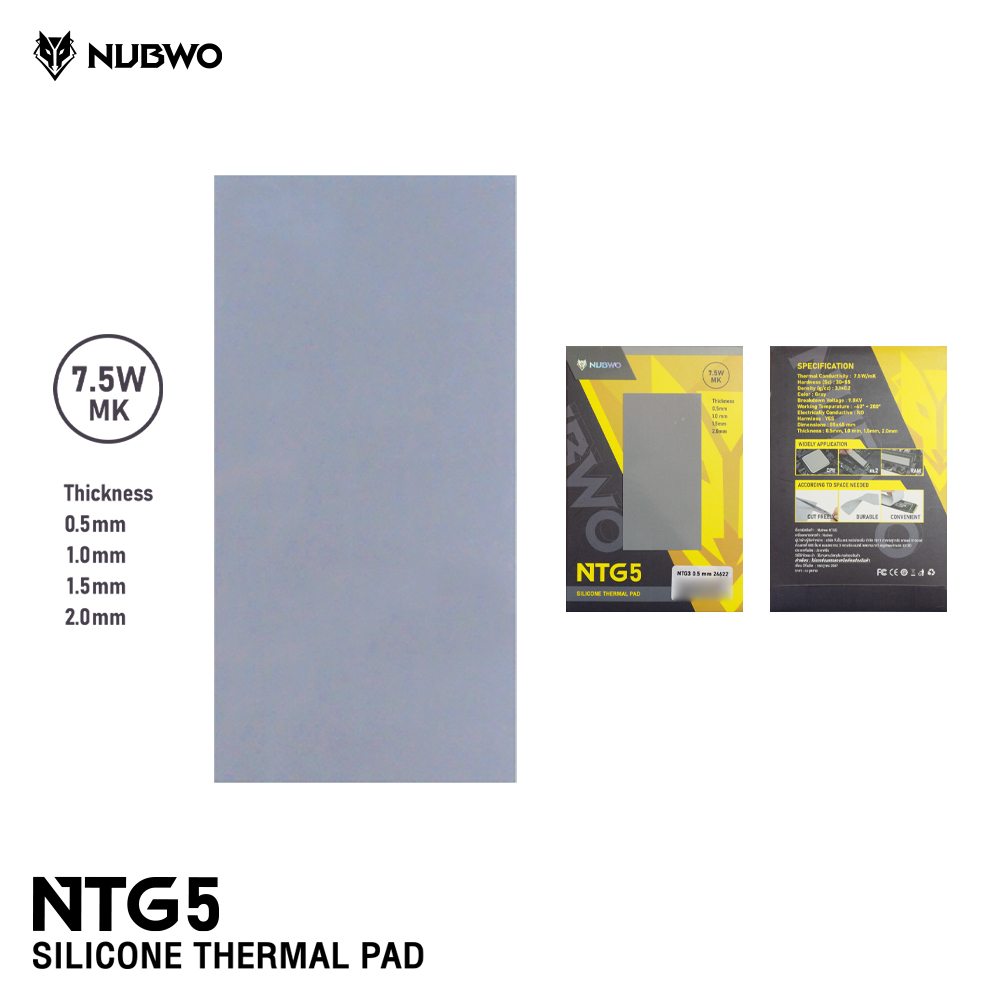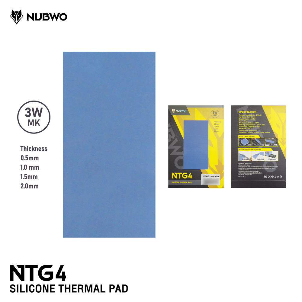 Nubwo Silicone Thermal Pad รุ่น NTG5 ซิลิโคน แบบแผ่นระบายความร้อนอุปกรณ์อิเล็กทรอนิกส์ ความหนา 0.5-2.00mm.