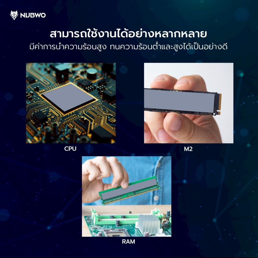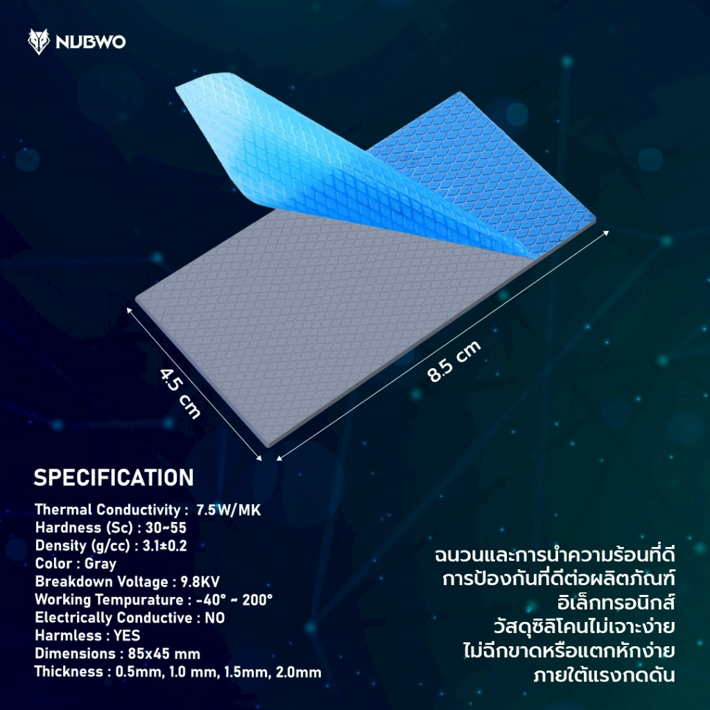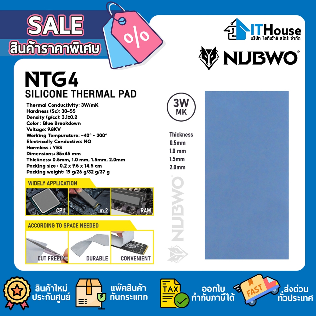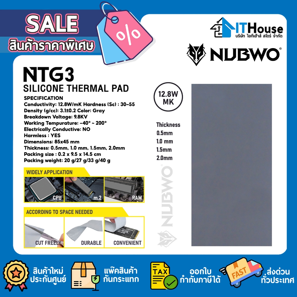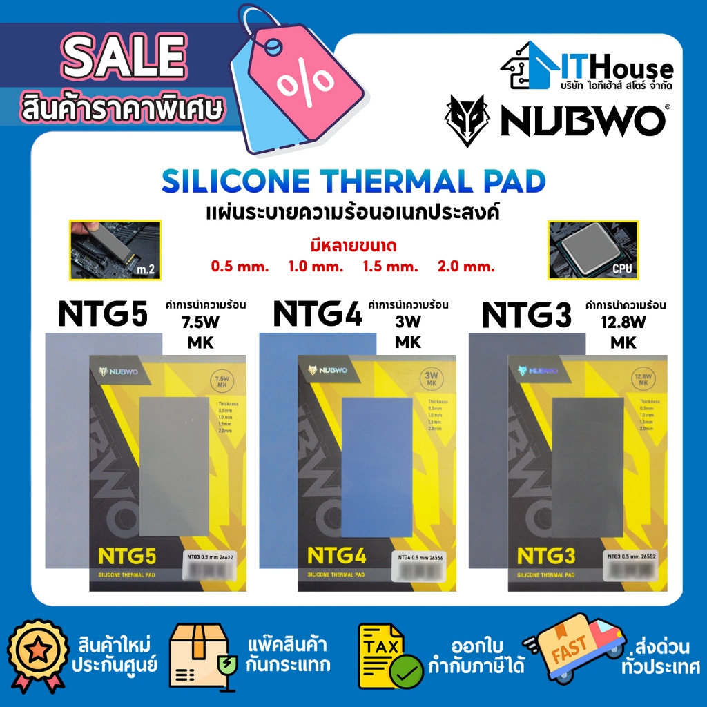 Nubwo Silicone Thermal Pad รุ่น NTG5 ซิลิโคน แบบแผ่นระบายความร้อนอุปกรณ์อิเล็กทรอนิกส์ ความหนา 0.5-2.00mm.