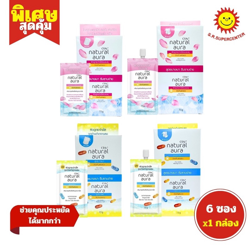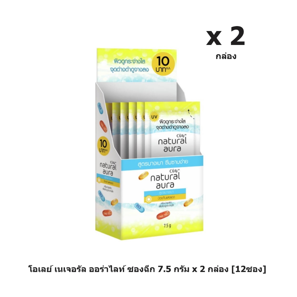 [2กล่อง] Olay โอเลย์ เนเจอรัล ออร่า ซองฉีก 7.5 กรัม x 2 กล่อง [12ซอง]