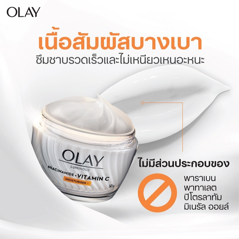 หมด7/2028) Olay Luminous โอเลย์ ลูมินัส ครีม วิตามินซี มอยส์เจอร์ไรเซอร์ 50 กรัมเหมาะกับจุดด่างดำและสีผิวไม่สม่