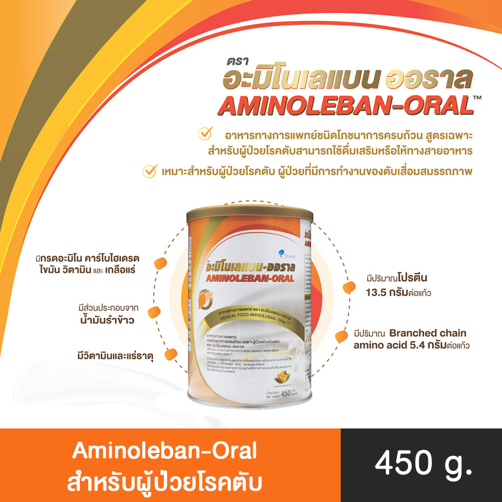 Aminoleban-oral (อะมิโนเลแบน-ออราล)อาหารทางการแพทย์สำหรับผู้ป่วยโรคตับ หรือให้ทางสายอาหาร 450 กรัม