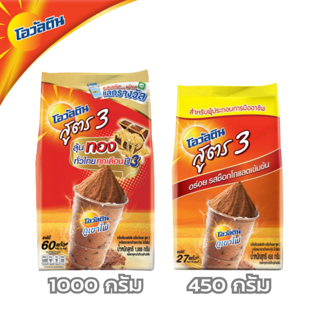 OVALTINE โอวัลติน สูตร 3 ขนาด 450/1000กรัม