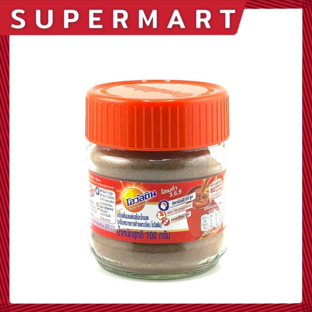 SUPERMARTโอวัลติน เครื่องดื่มมอลต์ รสช็อกโกแลต โอวัลติน คลาสสิก 100 กรัม แบบโหลแก้ว #1115436