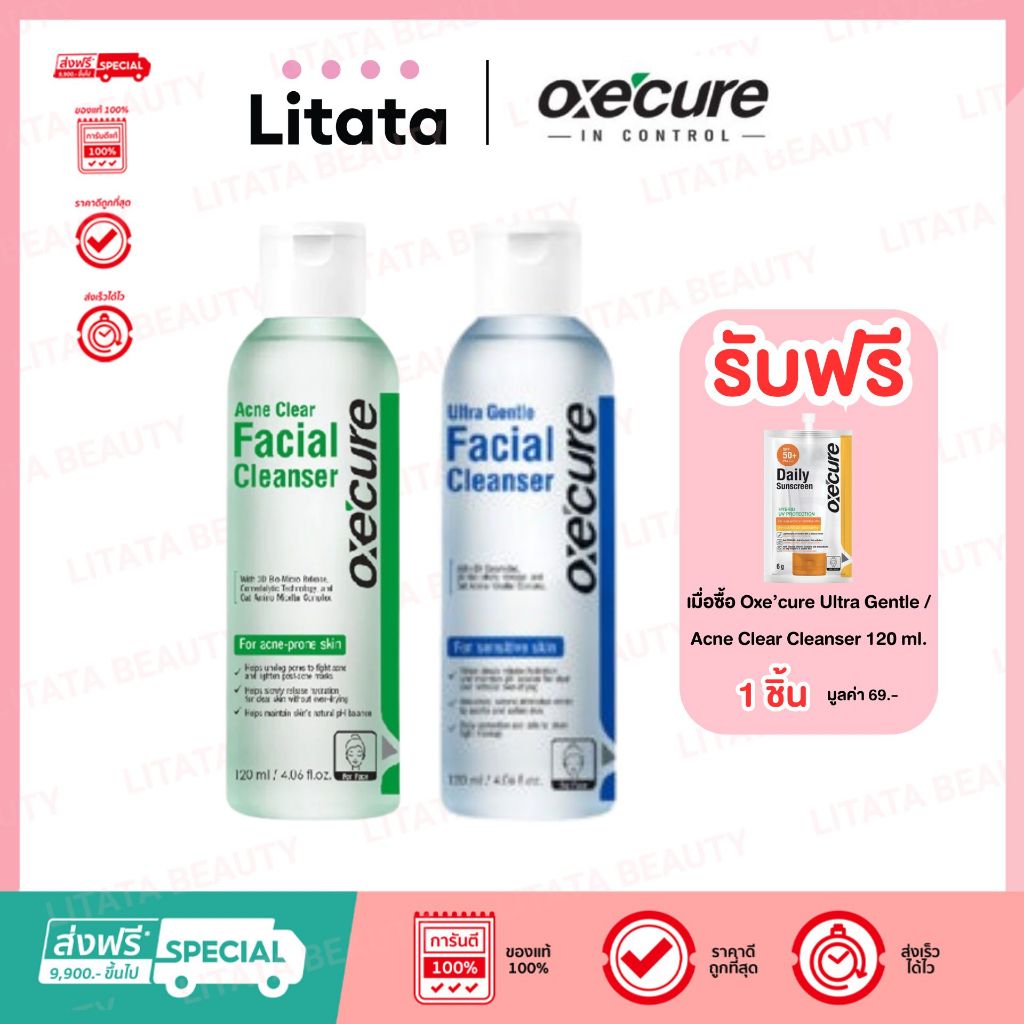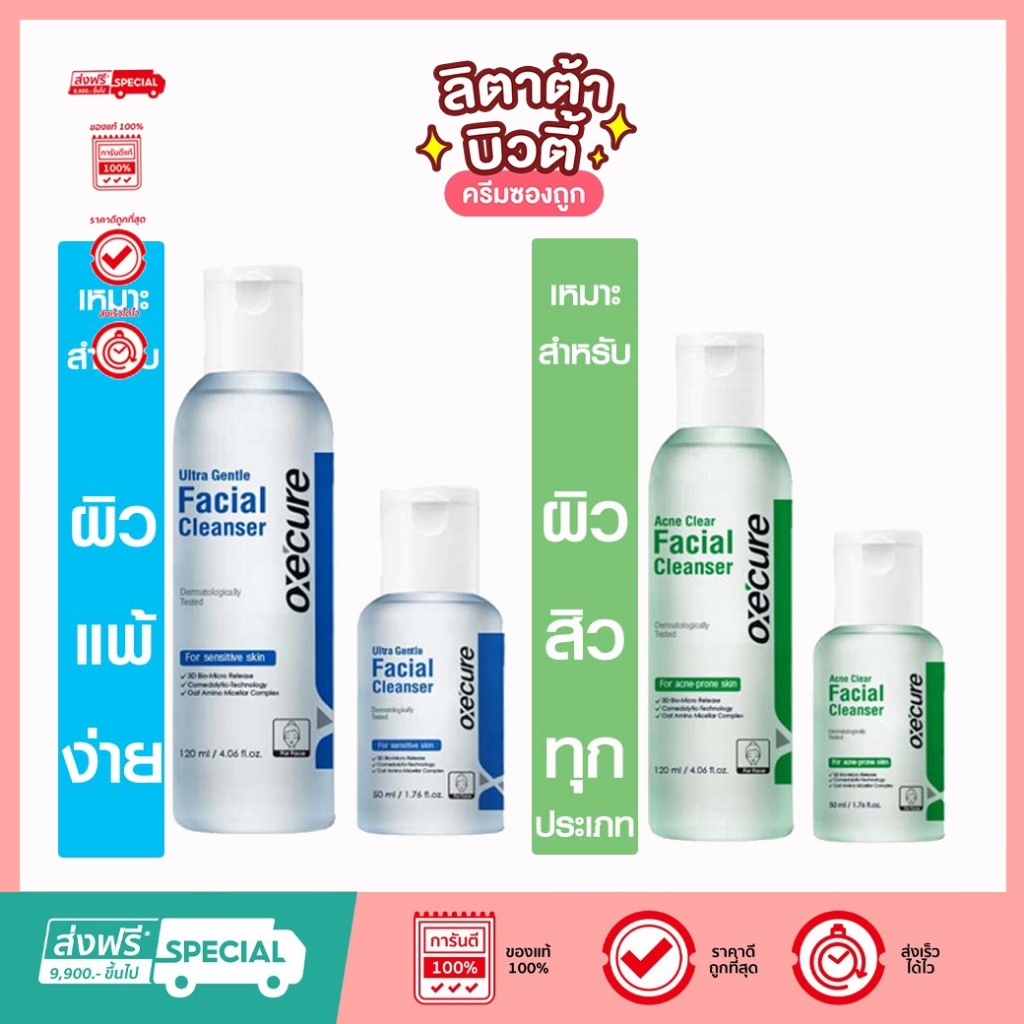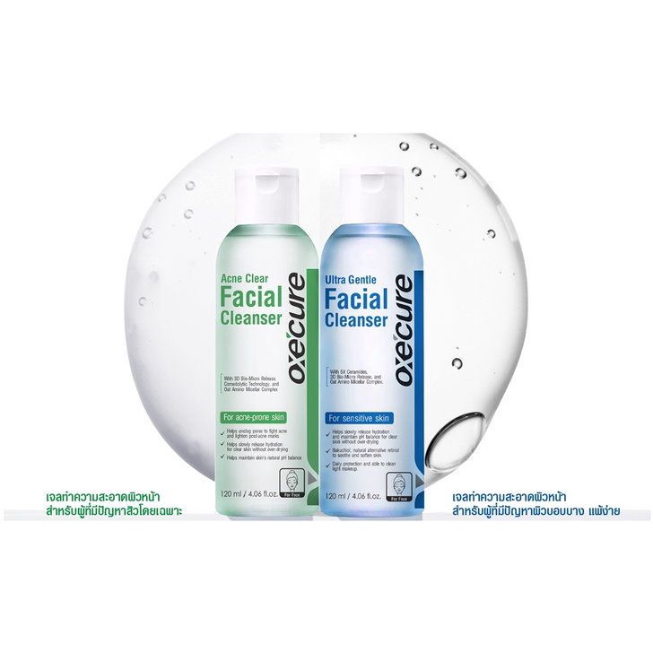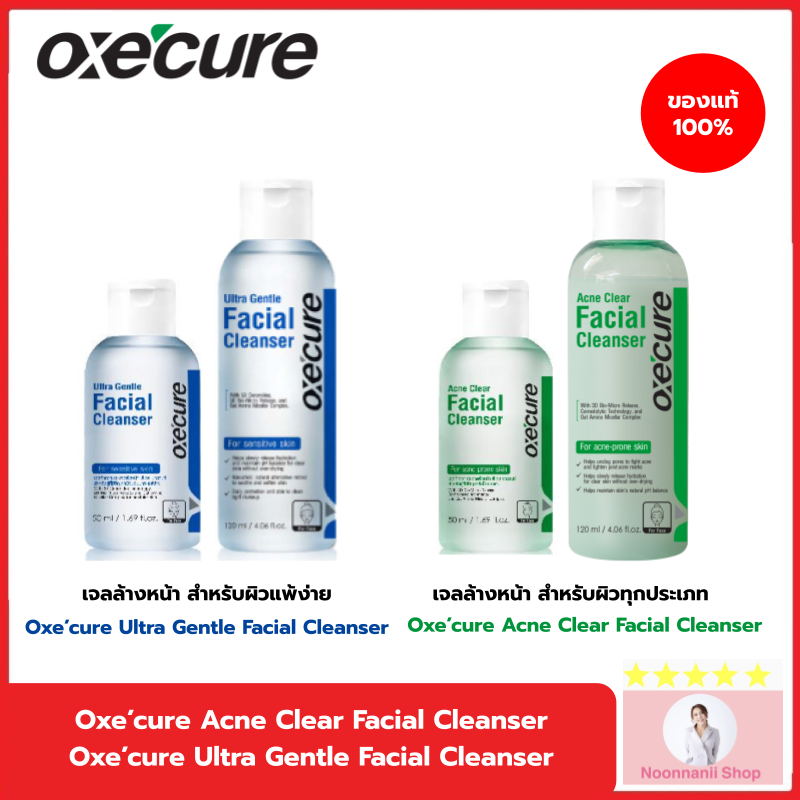 Oxe’cure เจลล้างหน้า สำหรับผู้เป็นสิว แพ้ง่าย Acne Clear Facial Cleanser และ ULTRA GENTLE FACIAL CLEANSER oxecure