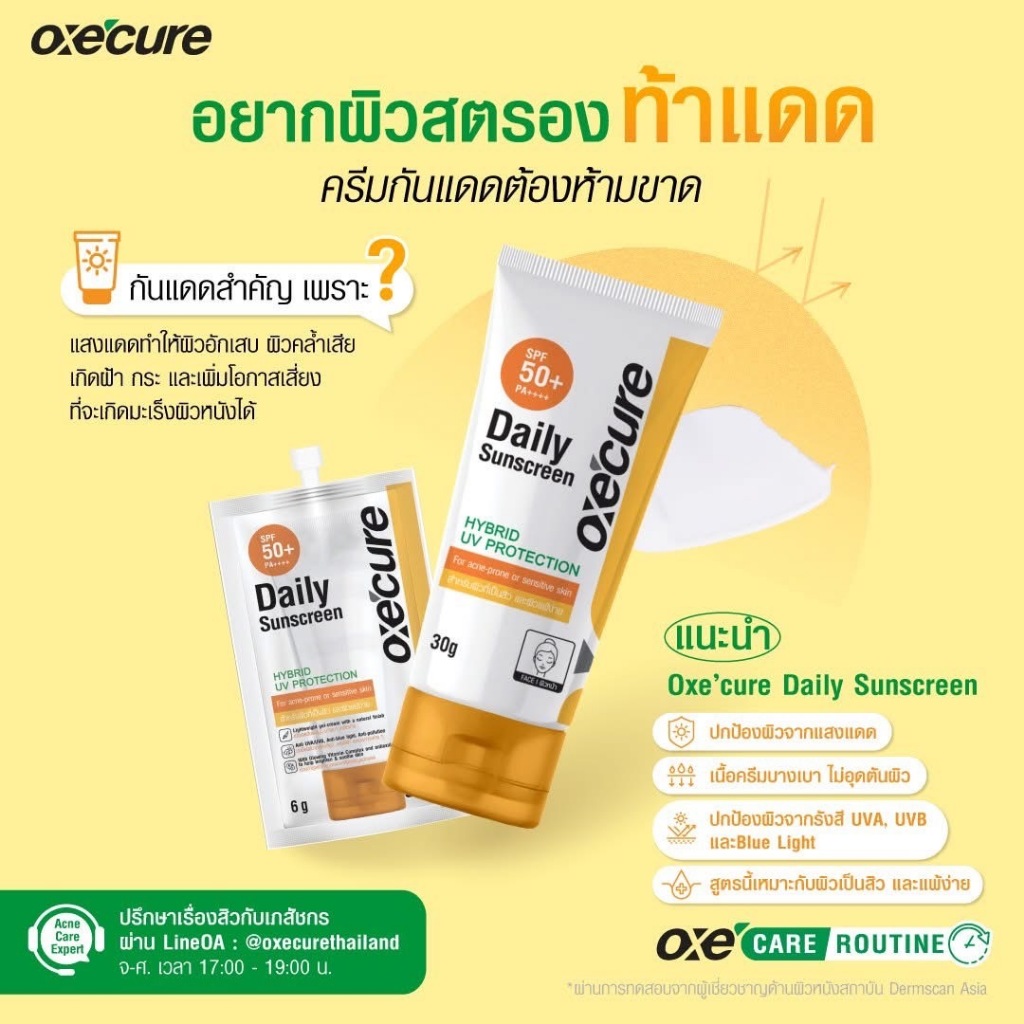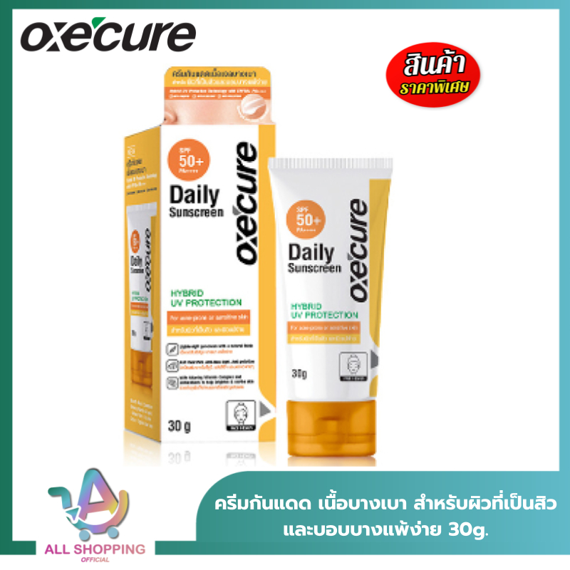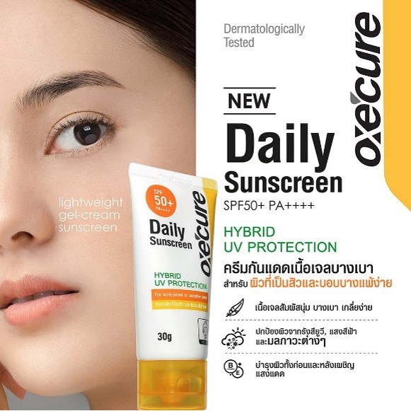 OXE’CURE ครีมกันแดด เนื้อเจลบางเบา SPF50+ PA++++ 30 กรัม DAILY SUNSCREEN Hybrid UV Protection (10OX00116)