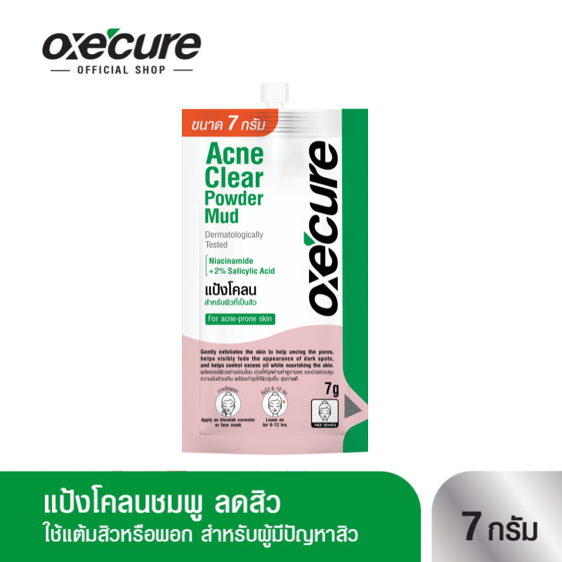Oxe’cure แต้มสิว แป้งโคลนชมพูลดสิว พอกหน้า แบบซอง Acne Clear Powder Mud 7 g จากประเทศญี่ปุ่น 10OX00102
