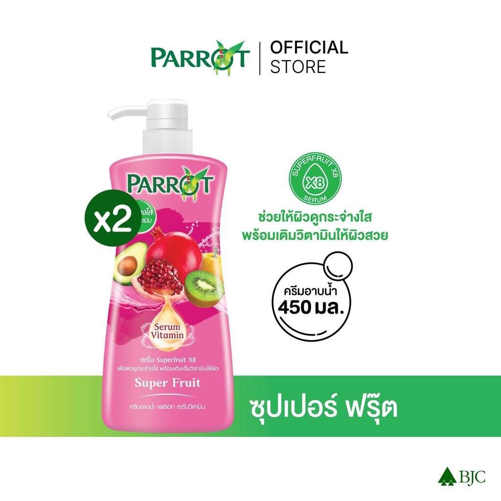 [2 ขวด]แพรอทครีมอาบน้ำ เซรั่ม วิตามิน ซุปเปอร์ฟรุ๊ต 450 มล. Parrot Shower Cream Serum Vitamin Super Fruit 450ML.