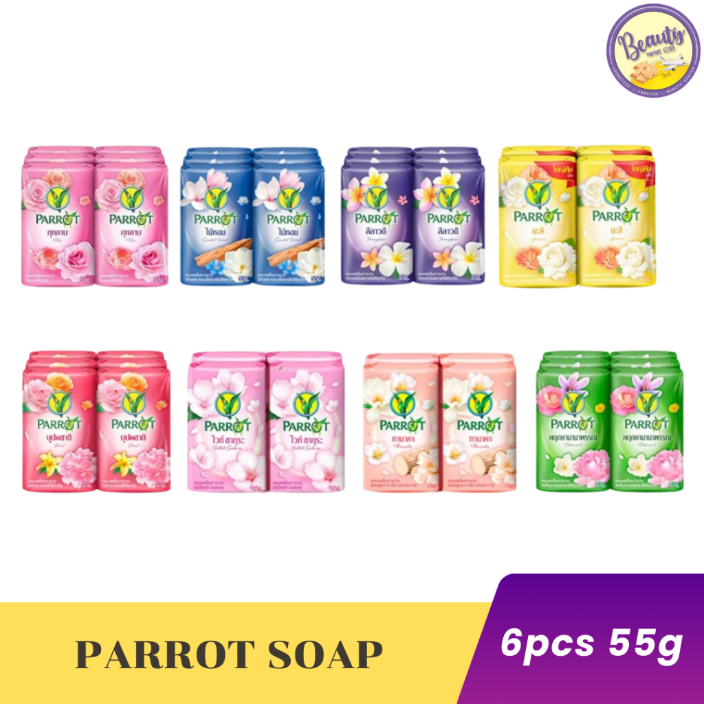 [แพ็ก 4] Parrot สบู่นกแก้ว สบู่พฤกษานกแก้ว 105gx4 ก้อน อาบสะอาด พร้อมให้ผิวสดชื่น ด้วยพฤกษานกแก้ว