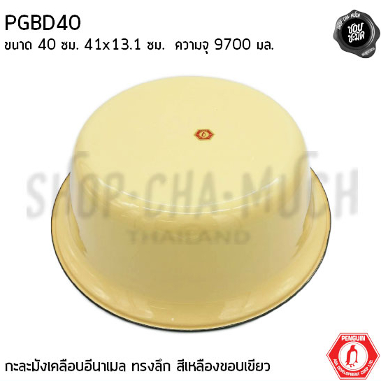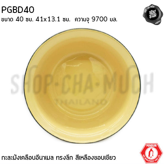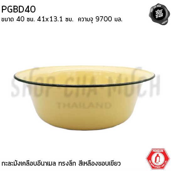 ชาม กะละมังเคลือบทรงลึก เหลืองขอบเขียว 40 ซม. 41×13.1 ซม. ความจุ 9700 มล. นกเพนกวิน PGBD40 – 1 ใบ