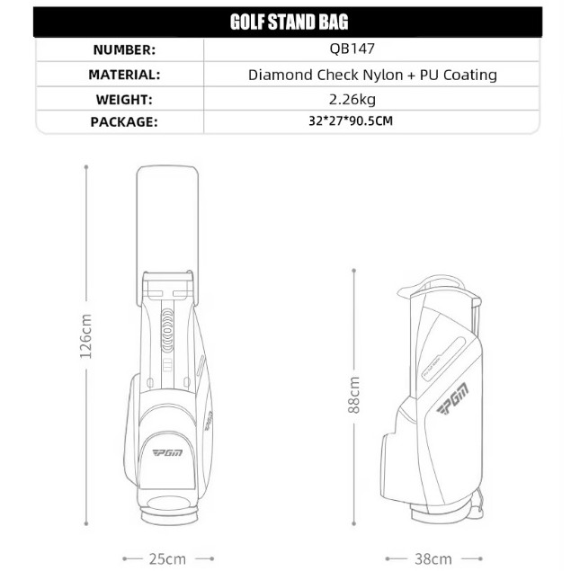 PGM GOLF Unisex กระเป๋ากอล์ฟ แบ่ง 14 ช่อง กระเป๋าใส่ขาตั้งน้ําหนักเบาสายสะพาย พกพาง่าย QB147