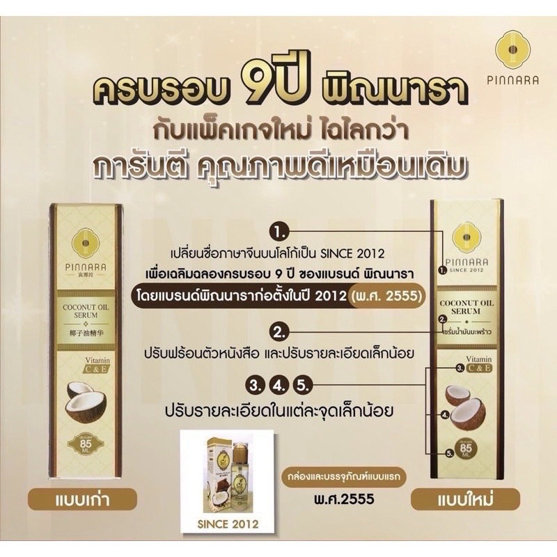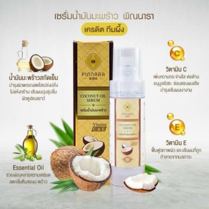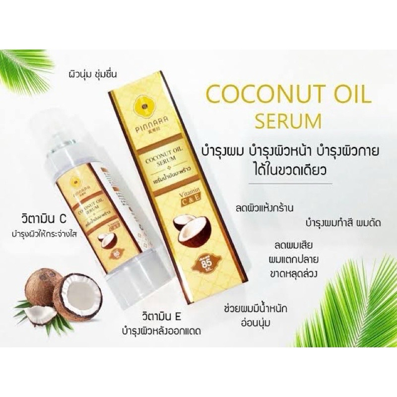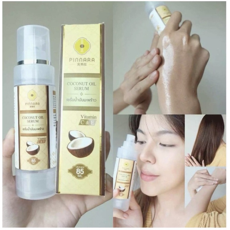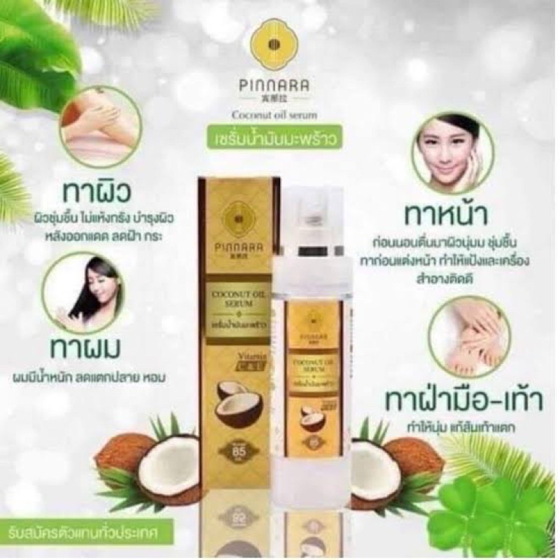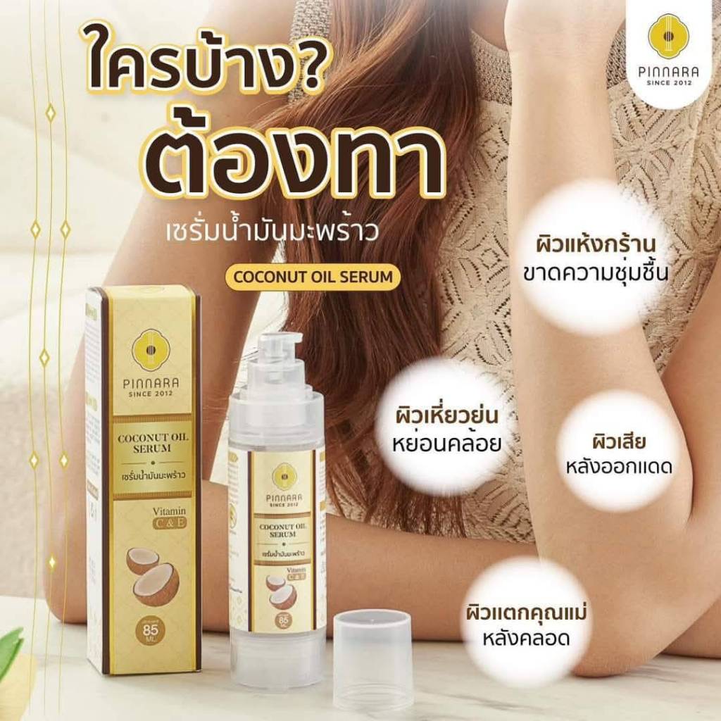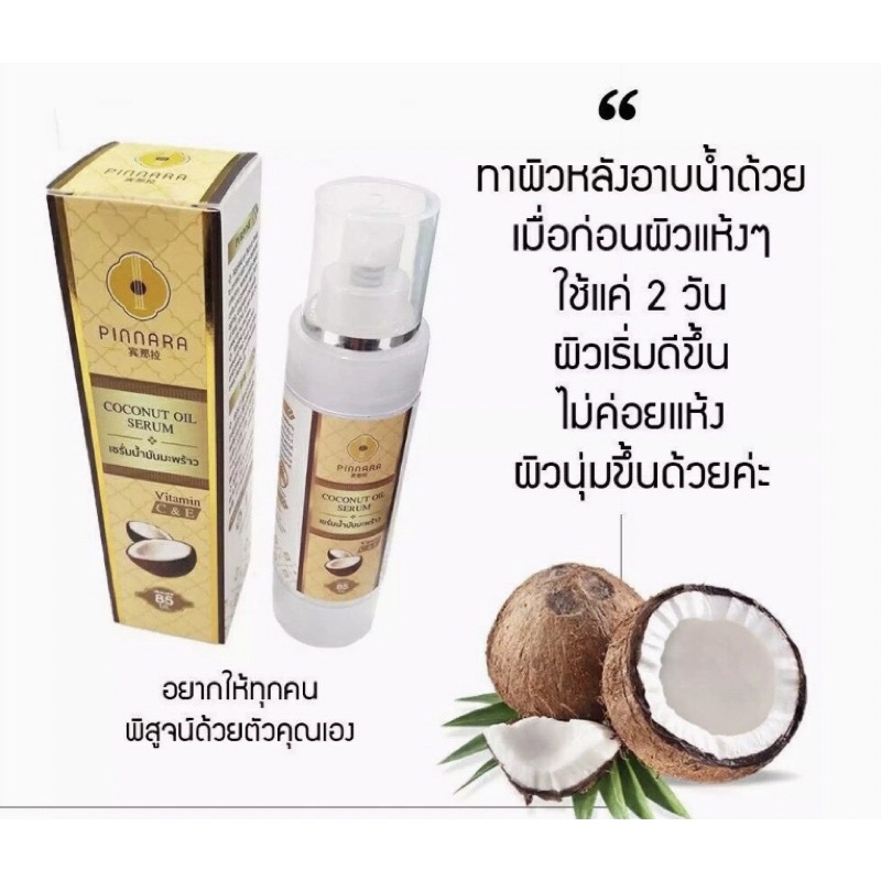 พิณนารา Pinnara เซรั่มน้ำมันมัพร้าว Coconut Oil Serum ผิวเนียนนุ่ม ชุ่มชื่น เหมาะกับทุกเพศทุกวัย ขนาด 85 มล. (ลบรหัส)