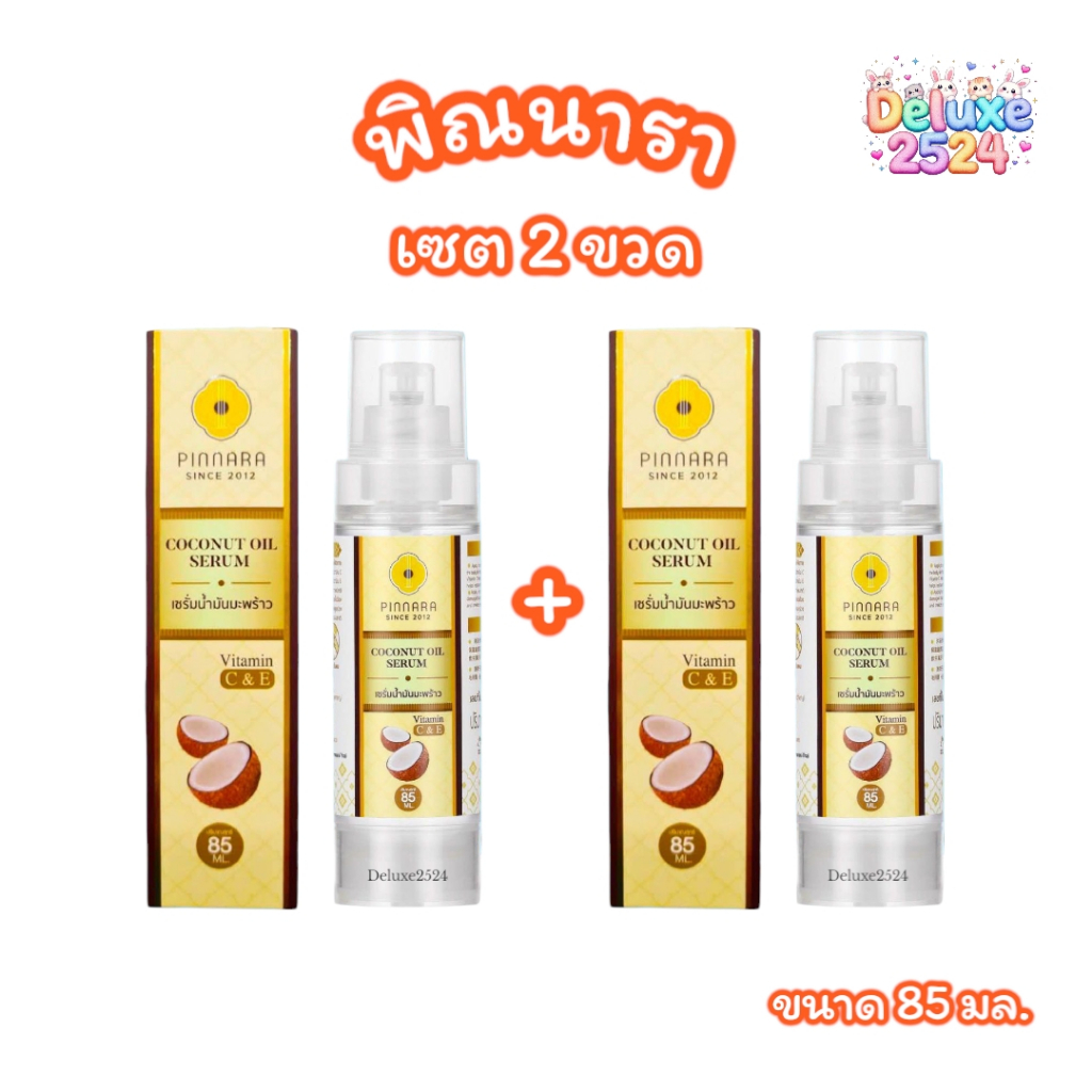 (เซต 2 ขวด) เซรั่มพิณนารา เซรั่มน้ำมันมะพร้าว Pinnara Coconut Oil Serum เซรั่มบำรุงผิว (ขนาด 85มล.)
