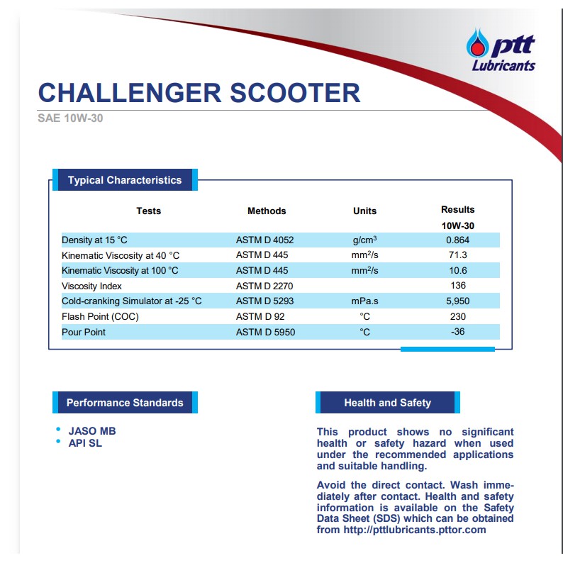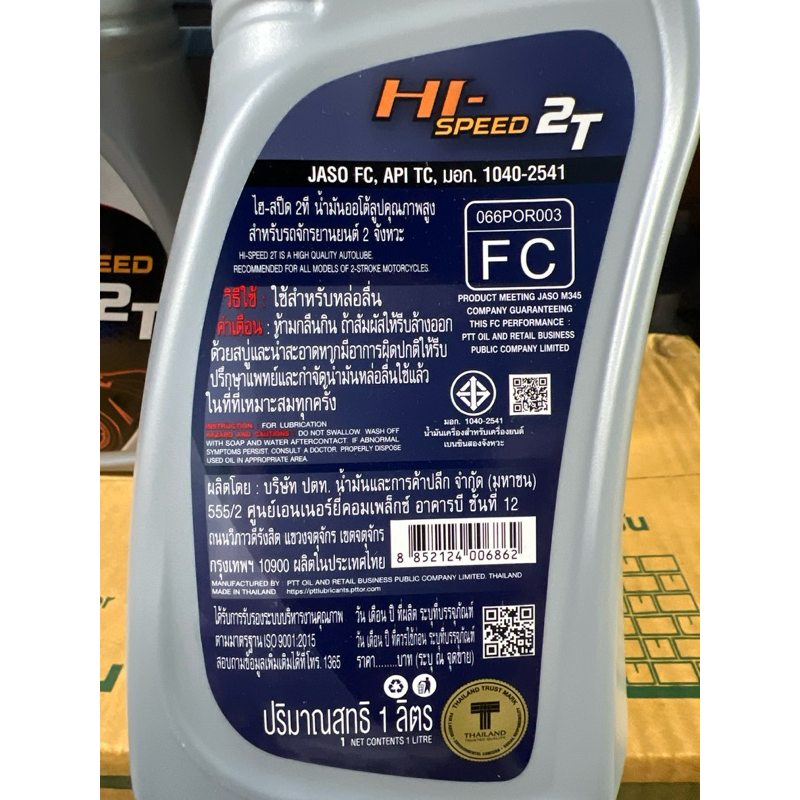 PTT HI-SPEED / CHALLENGER / CHALLENGER SYNTHETIC ปตท. น้ำมัน 2T ขนาด 1 ลิตร